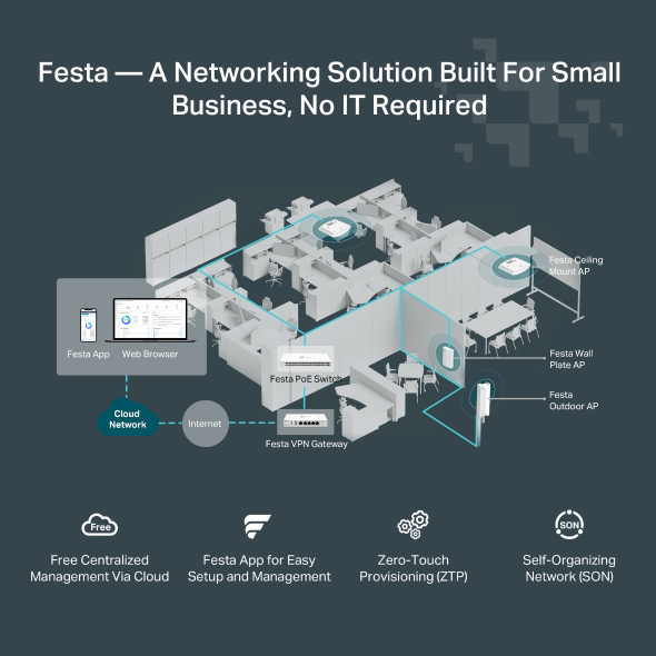 Festa offers business-class features with consumer-inspired simplicity. Our free cloud-based centralized management is accessible via the Festa app or web, providing essential features for small businesses without the complexity required by larger-scale operations.