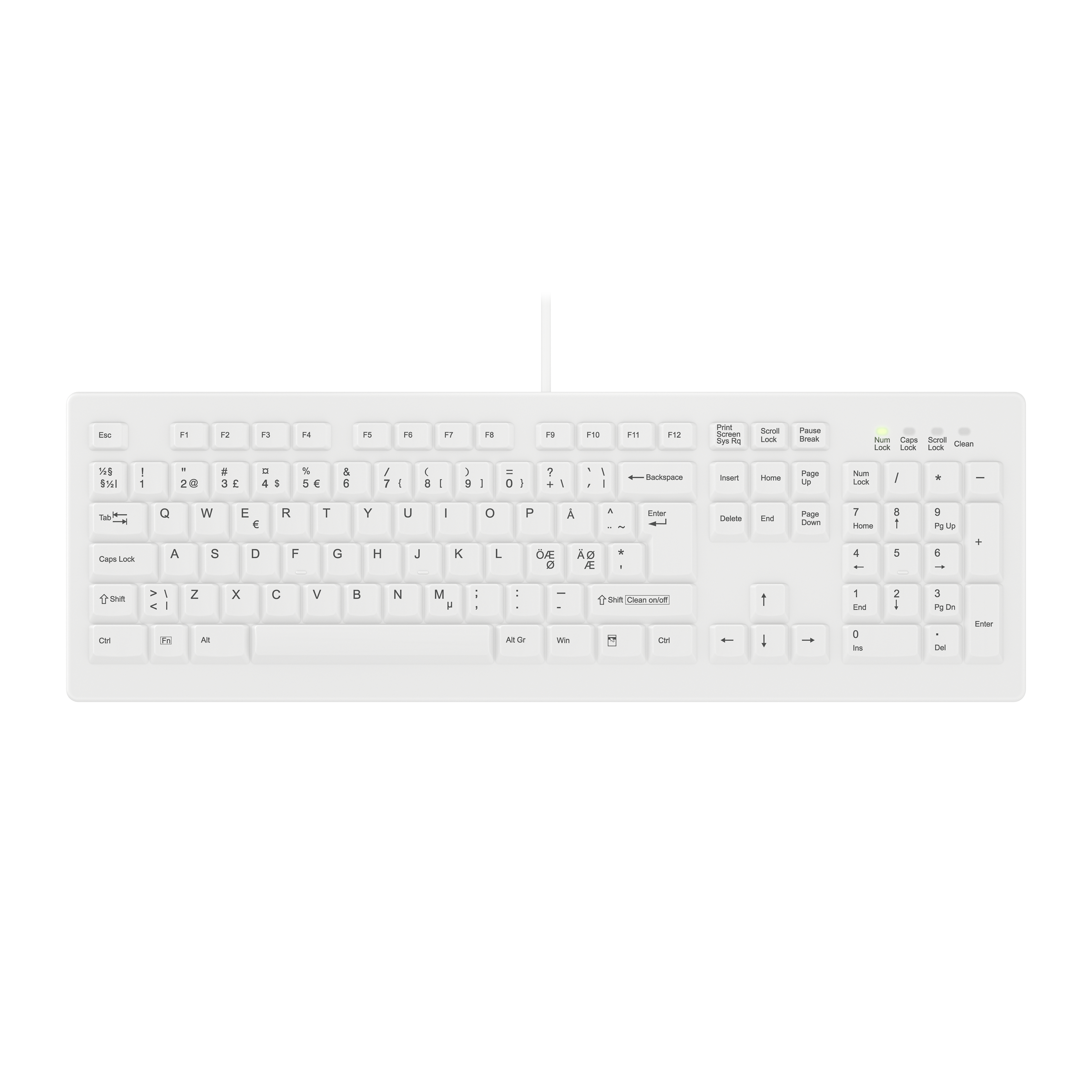 ClassicClean medicinske tastatur er udviklet til hygiejnekrævende miljøer i sundhedssektoren, tandklinikker og laboratorier, hvor det forener velkendt skrivekomfort med et slidstærkt design, der er nemt at desinficere.