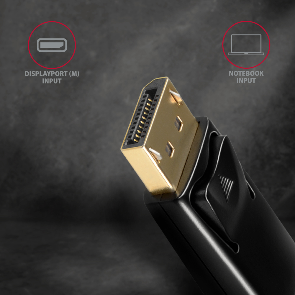 DisplayPort -> HDMI active adapter AXAGON RVD-HI14N to connect HDMI monitor/TV/projector to the computer with the DisplayPort output.