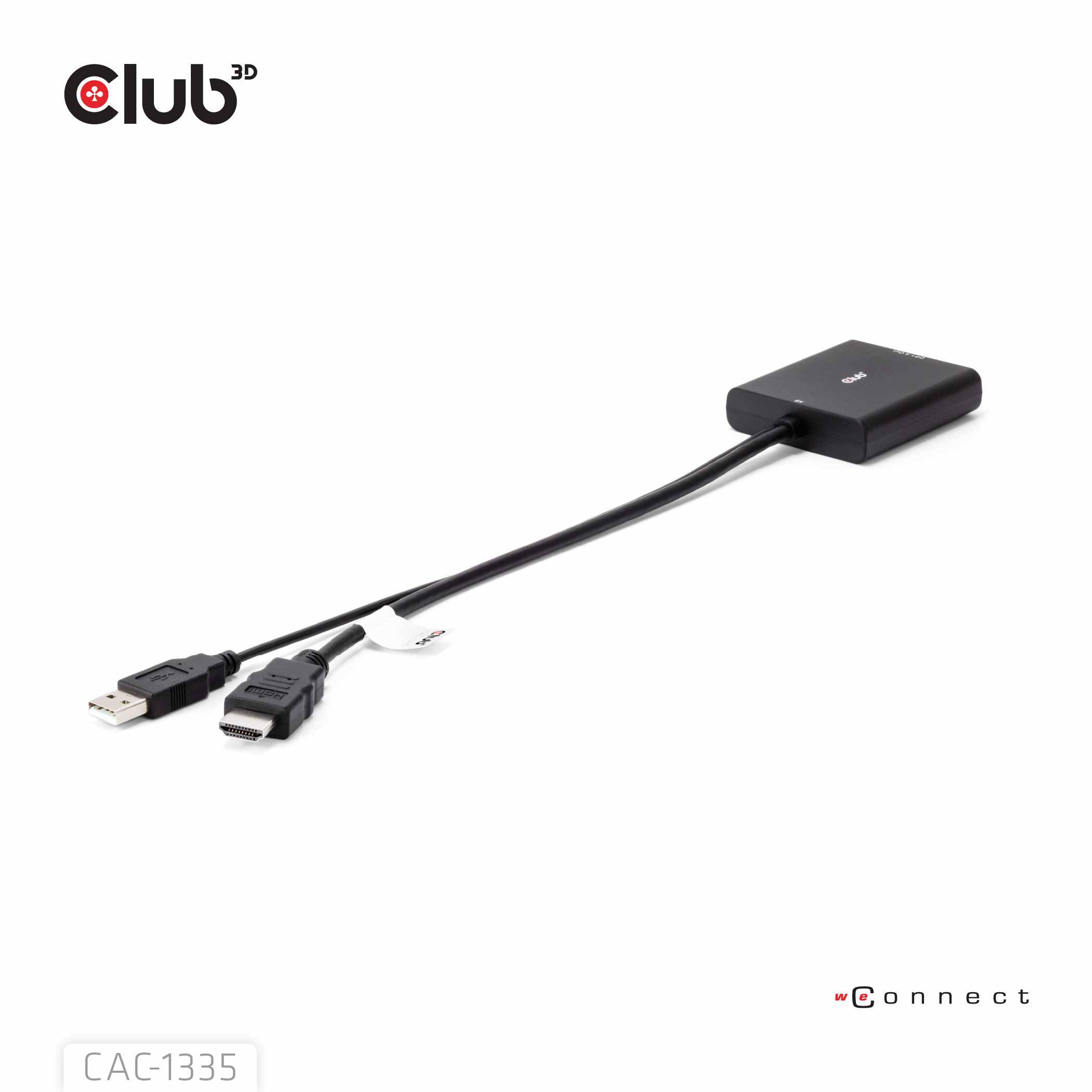 The Club 3D CAC-1335 is the perfect solution to connect to any DisplayPort™ 8K30Hz or 4K120Hz ready displays from a HDMI™ source which does supports these resolutions/specifications.