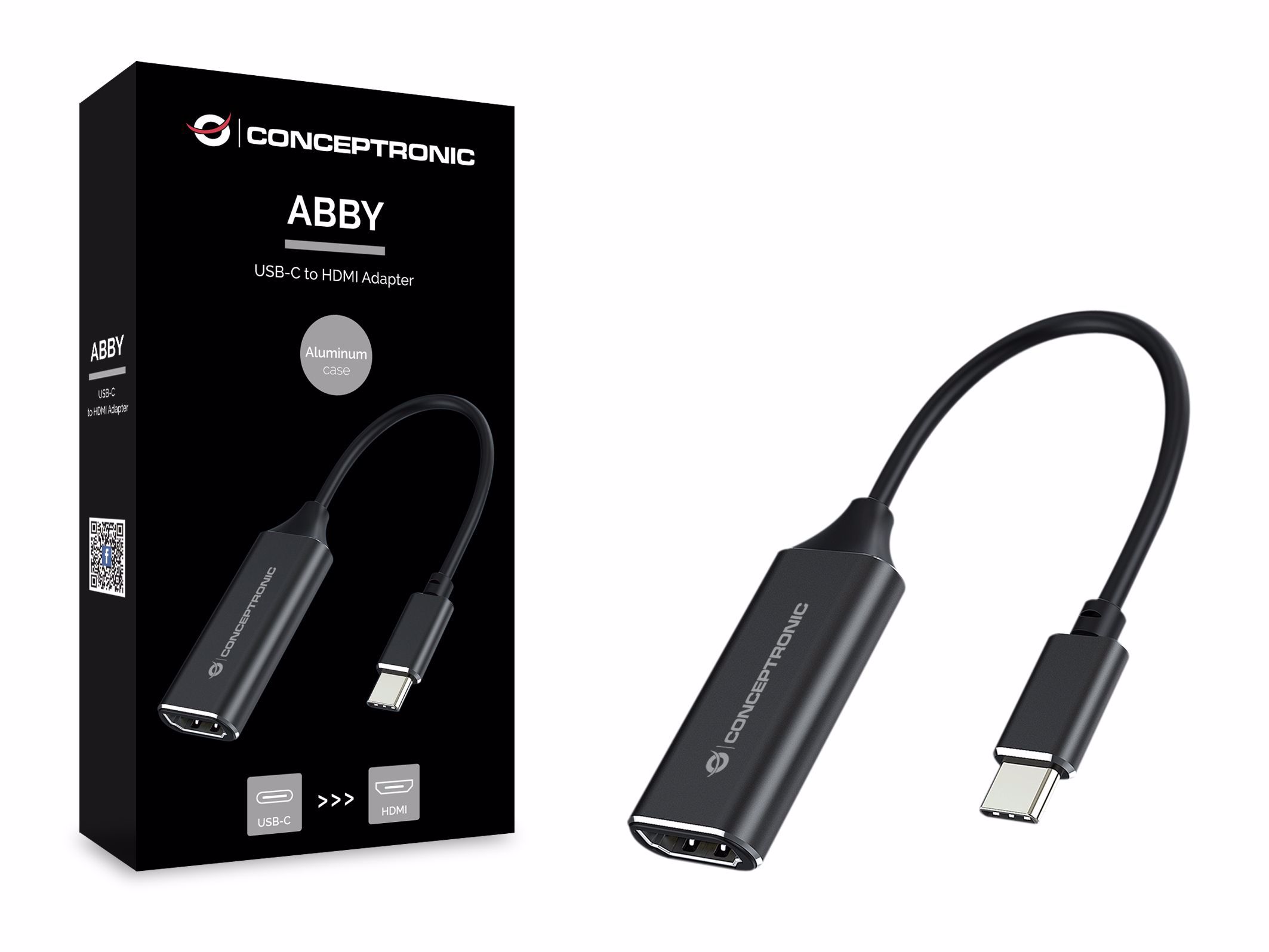 Conceptronic ABBY03B, HDMI Type A (Standard), USB Type-C, Hunstik, Hanstik, Lige, Lige