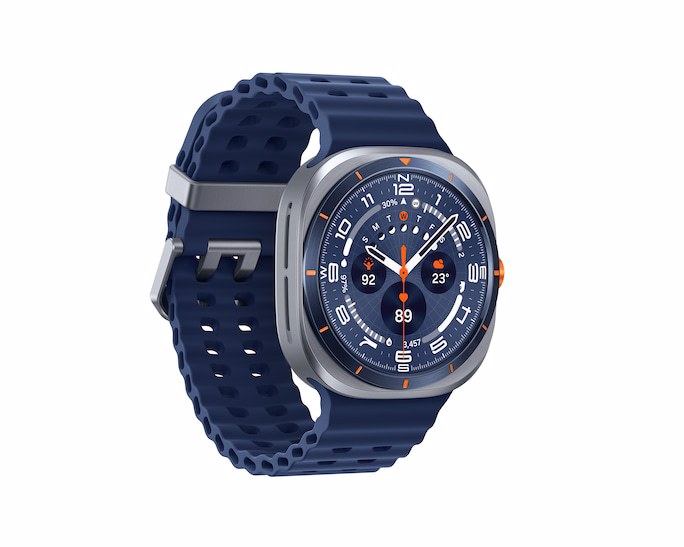 Galaxy Watch Ultra er skabt til at skubbe grænser. Den tåler op til 55 °C varme, 9.000 m højde, 10 ATM vandtryk og fungerer problemfrit med en ny og kraftfuld 3 nm-processor. Tag på lange vandreture med et batteri der holder op til 100 timer i energisparetilstand. BioActive-sensoren følger din aktivitet, og Galaxy AI giver dig indsigt, der guider dig til at tage det næste skridt. Nu fås uret også i Titanium Blue – en nuance, der står for modstandsdygtighed og er klar til at følge med på dine eventyr.