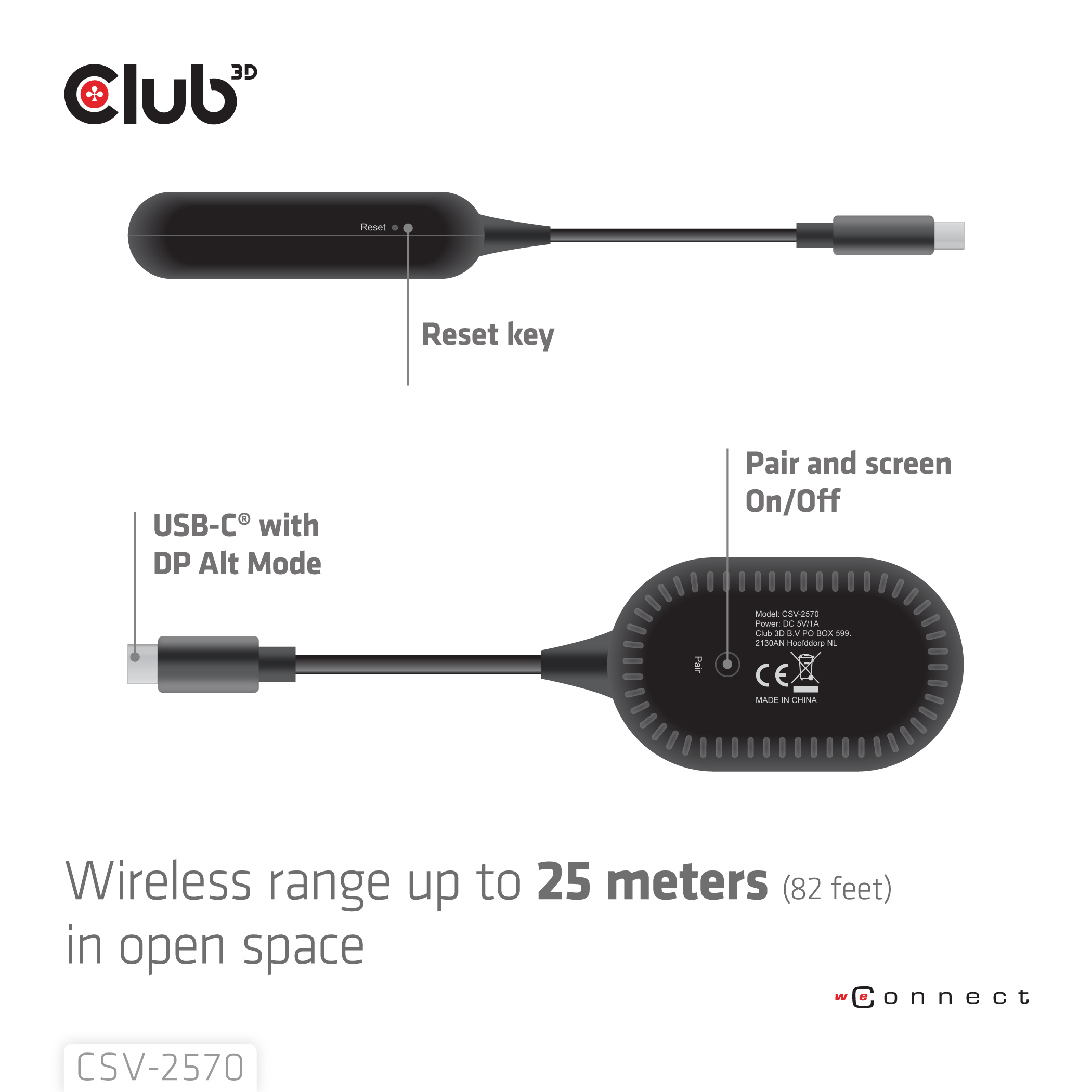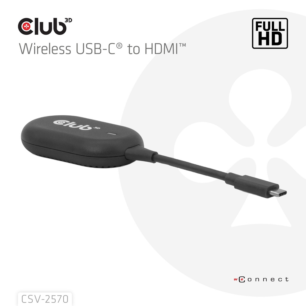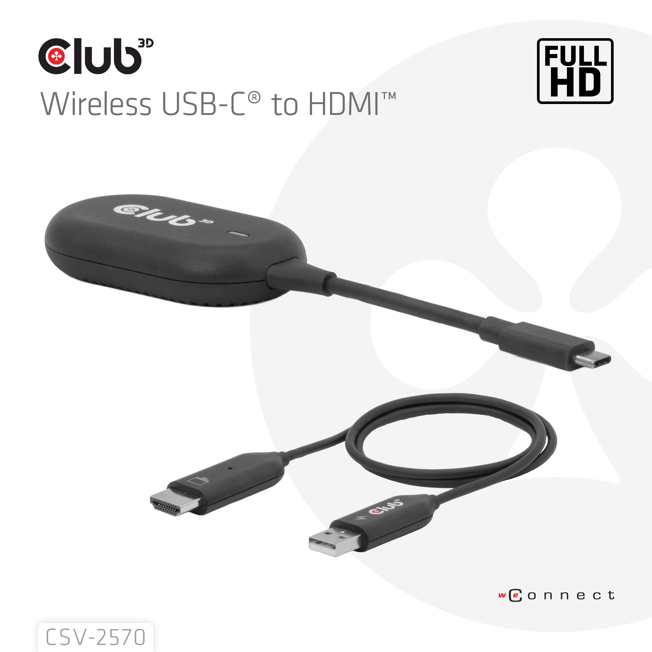 The Club 3D CSV-2570 is the first wireless HDMI™ device. With a transmitter and receiver, it wirelessly streams FullHD video and audio from USB-C® alt-mode devices to HDMI™ displays.