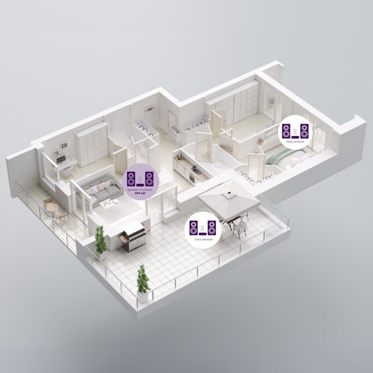 No more messy cables in your room; the Speaker Anywhere 650 enables you to connect your home cinema set's (rear) speakers wirelessly.