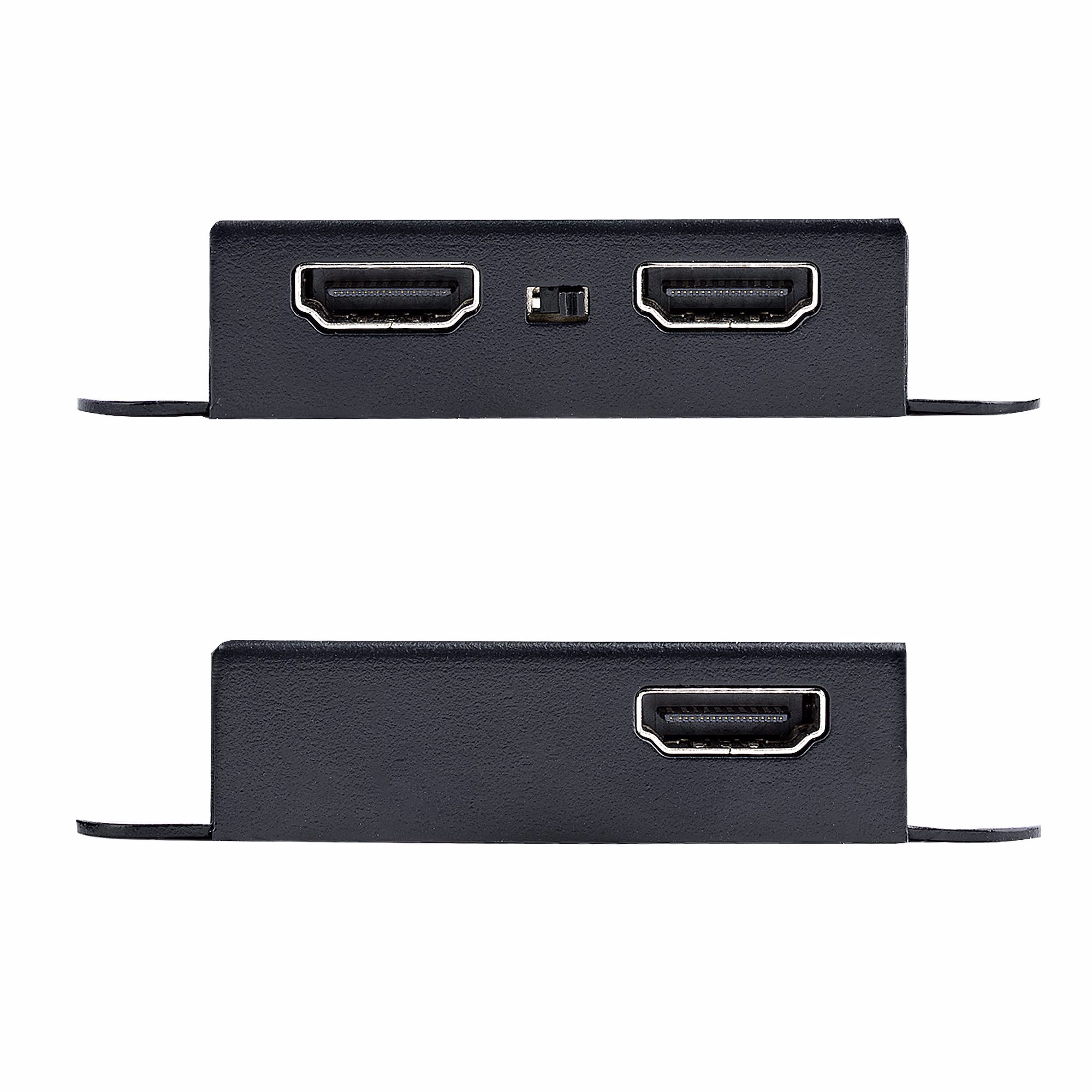 The 4K HDMI Extender over Ethernet cable has an HDMI output on the transmitter unit allowing the solution to be cascaded to other video extenders or for use to a local display. Plug-and-play installation with no additional software or drivers required. The metal housing and built-on mounting brackets allow for professional installation options, ideal for digital signage, boardrooms, and tradeshow applications.
