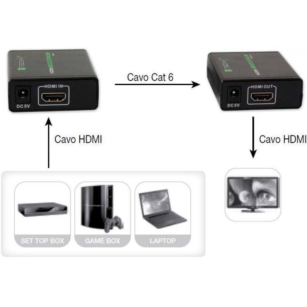 - It allows to easily extend the HDMI signal using cables Cat.6 / 6A / 7 to extend the transmission distances