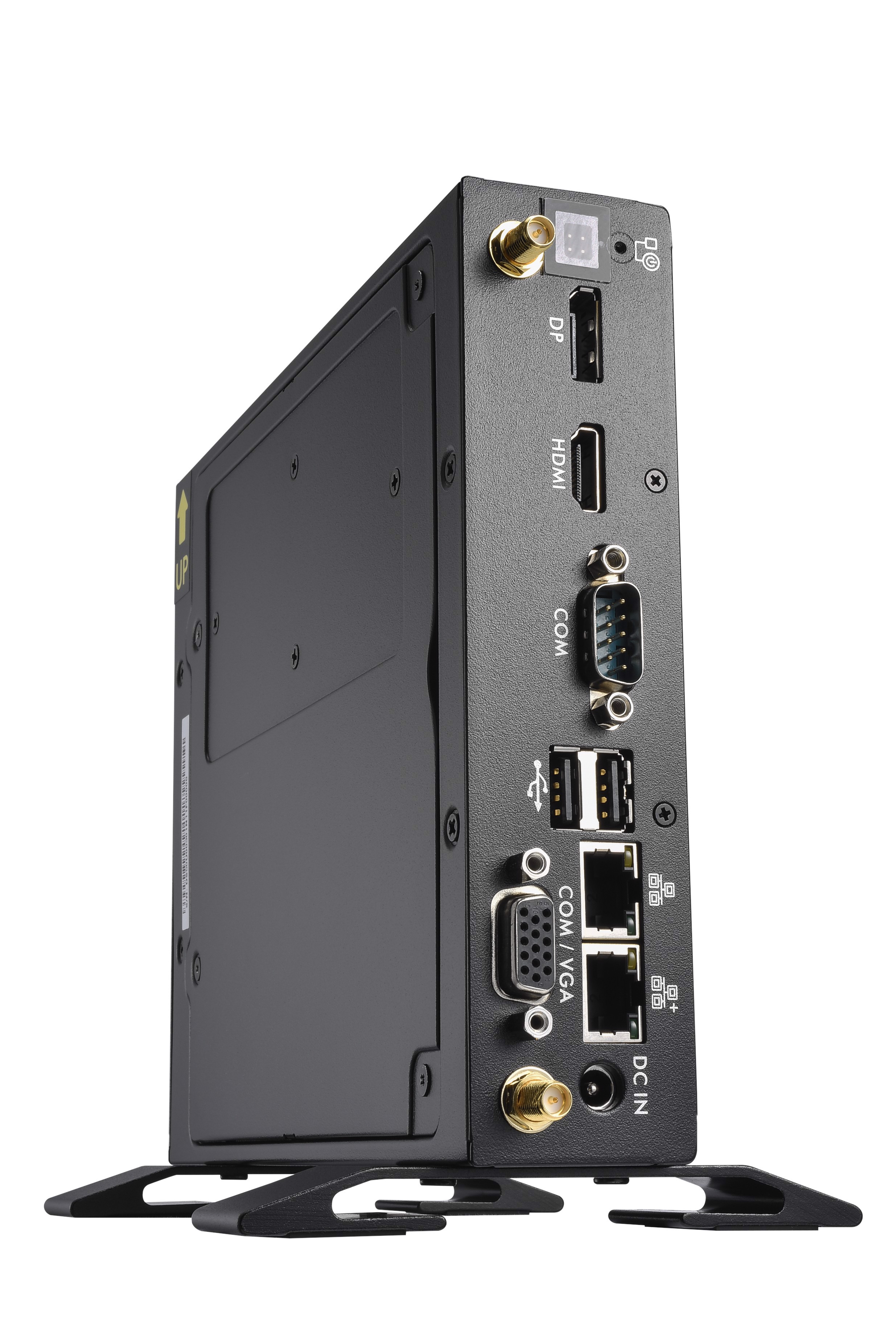 The DS50U-series is a fanless slim PC with a robust 1.3-litre metal chassis and exceptional connectivity. It supports two digital video outputs for UHD/4K displays and one traditional D-Sub/VGA connector. The built-in Intel Gen 12/13 processor provides ample performance for playback of 2160p/60 videos. Installation of components goes straight forward, as there is plenty of interior space for two DDR5 memory modules, one 2.5" drive and two M.2-2280 SSD cards.