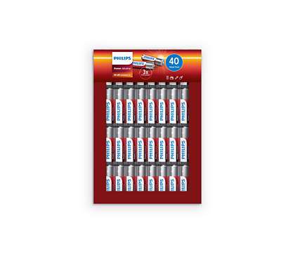Philips offers a complete portfolio consisting of the most frequently used batteries (AA, AAA, C, D, 9V) in different packaging variations in order to meet your needs.