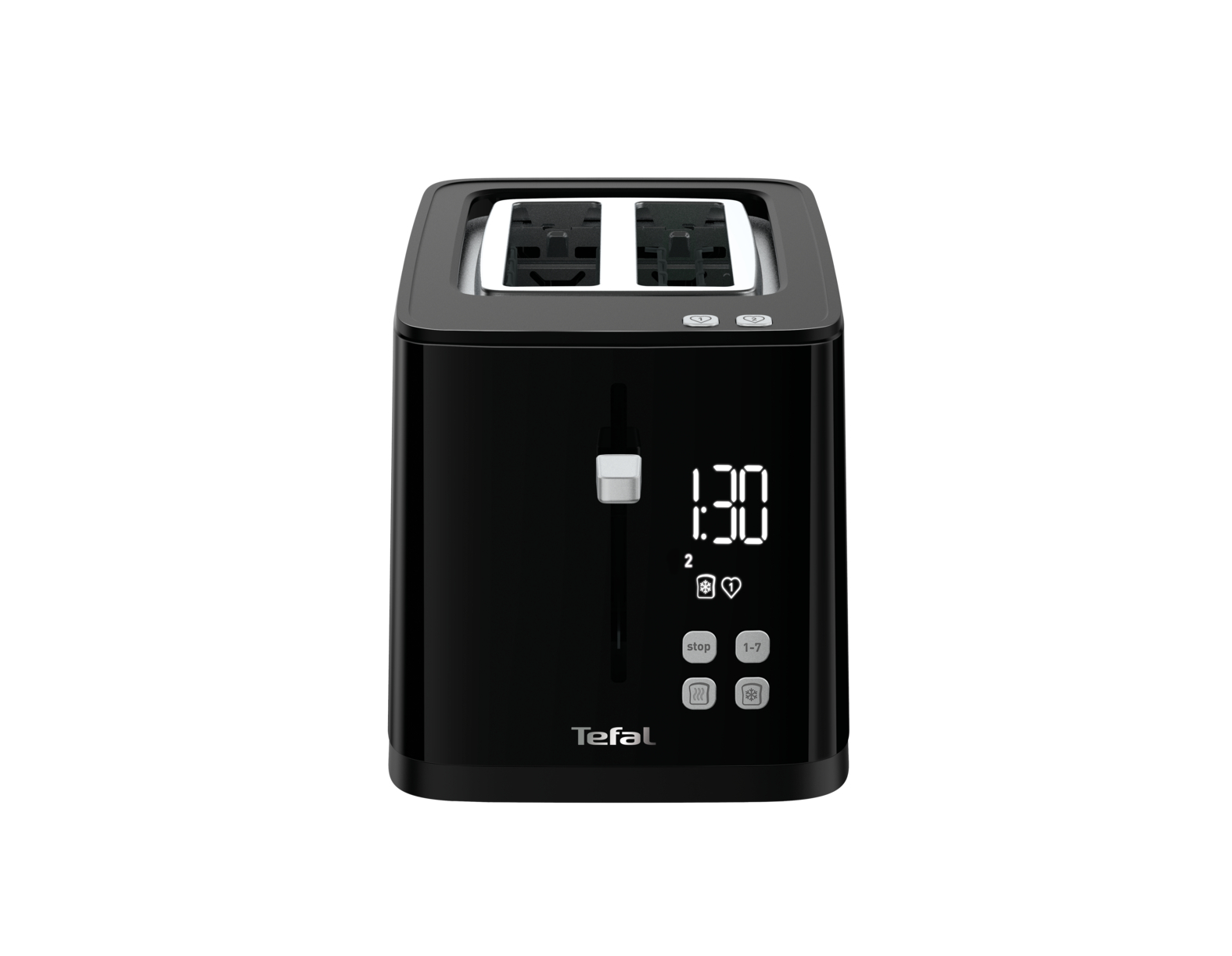 Enjoy perfectly browned toast adapted to every taste, with the Tefal Toaster – the modern, intuitive toaster that is as refined as it is forward-thinking. This sleek all-black toaster lets you save your preferred settings so they're just a touch away, ensuring your toast is always how you like it. Featuring a seamless, minimalist digital screen that shows the live countdown of the toasting time, it also offers a range of seven browning levels, from lightly golden to extra crispy – perfect for customized results. Additional convenient features include dedicated Stop, Defrost and Reheat functions with light indicator, variable width slot with automatic bread centering, a removable crumb tray for easy clean-up, and a high-lift lever for facilitated toast removal. Plus, it offers a streamlined aesthetic and intuitive design that is perfect on the countertop of any modern, sophisticated kitchen.