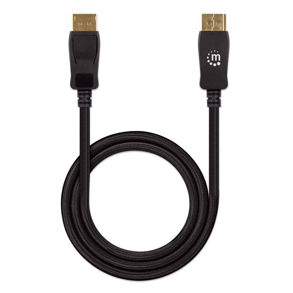 The Manhattan DisplayPort Monitor Cable makes you ready for even the most demanding graphic challenges in gaming, digital signage and other high-end AV applications. Its superior DisplayPort 1.4 standard delivers images in brilliant 8K (7680 x 4320) at rapid 60 Hz or 4K UHD at blazing fast 120 Hz with HDR10 for perfect contrast and colors. Its braided-fabric jacket makes it virtually tangle-free and extremely durable while the triple shielding and gold-plated contacts provide maximum conductivity as well as crisp, clear signal transmissions with zero EMI interference.