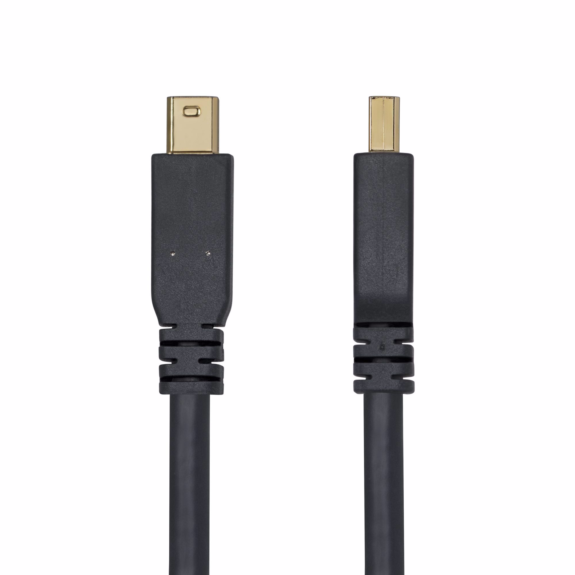 This 10ft Mini DisplayPort to DisplayPort v1.4 cable features a mDP male connector on one end, and a DP male latching connector on the other, allowing you to connect any Mini DisplayPort-enabled laptop or workstation to an 8K TV, monitor or projector that uses a standard DisplayPort connection.