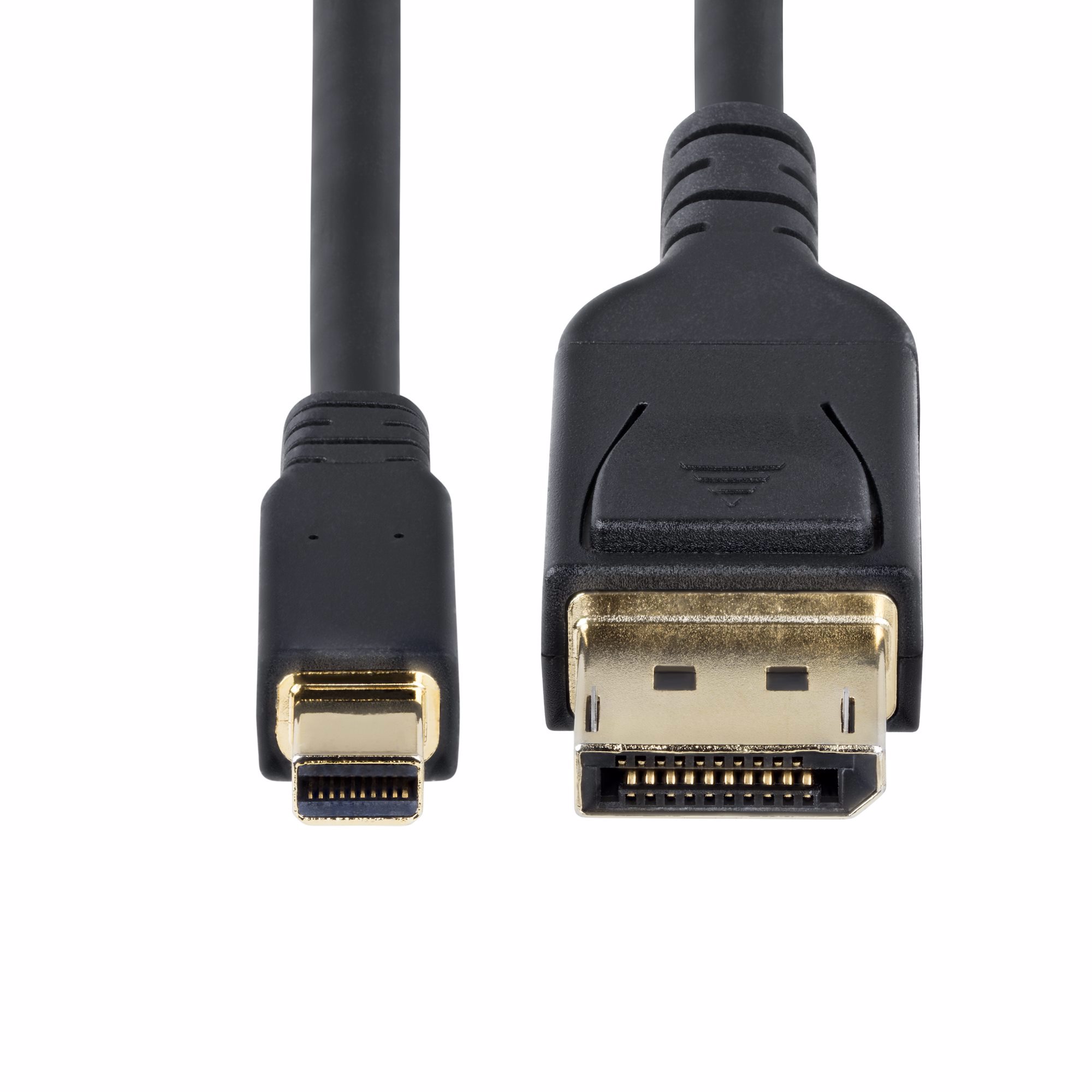 This Mini DisplayPort to DisplayPort v1.4 adapter cable is designed with gold-plated latching DisplayPort connectors that prevent accidental disconnection, making it a great accessory for office or boardroom applications.