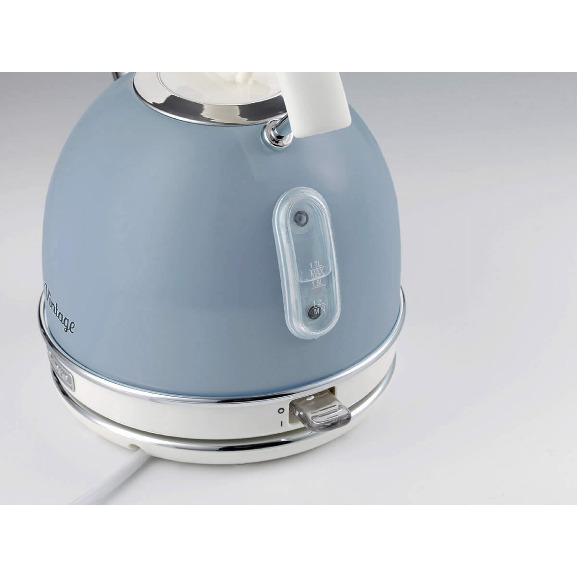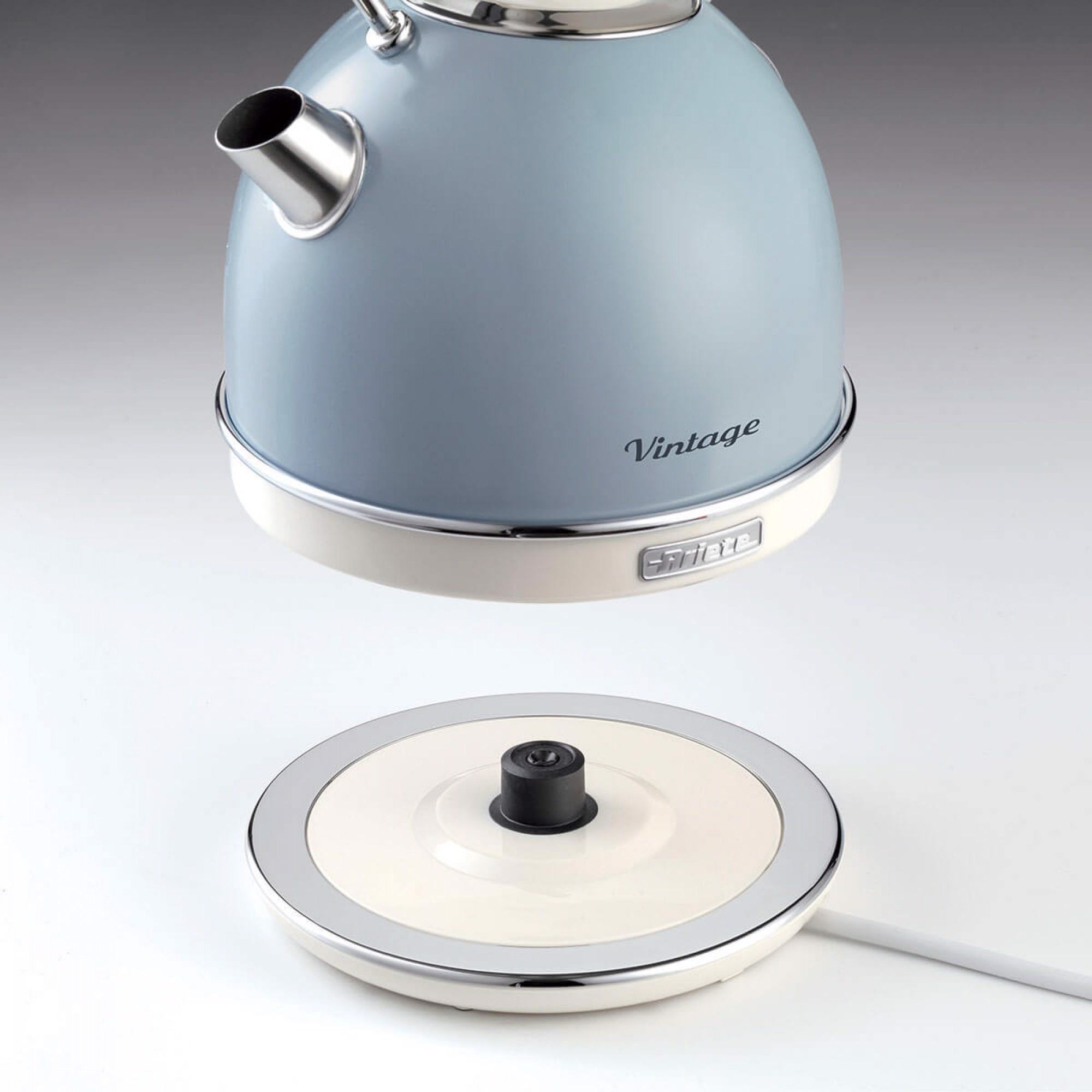 Kettle with a vintage design that recalls old-fashioned shapes, essential to taste moments like breakfast or tea break at their best. Equipped with removable and washable scale filter, an ergonomic handle with soft touch finishing and auto-off system, it's an essential ally in every kitchen.