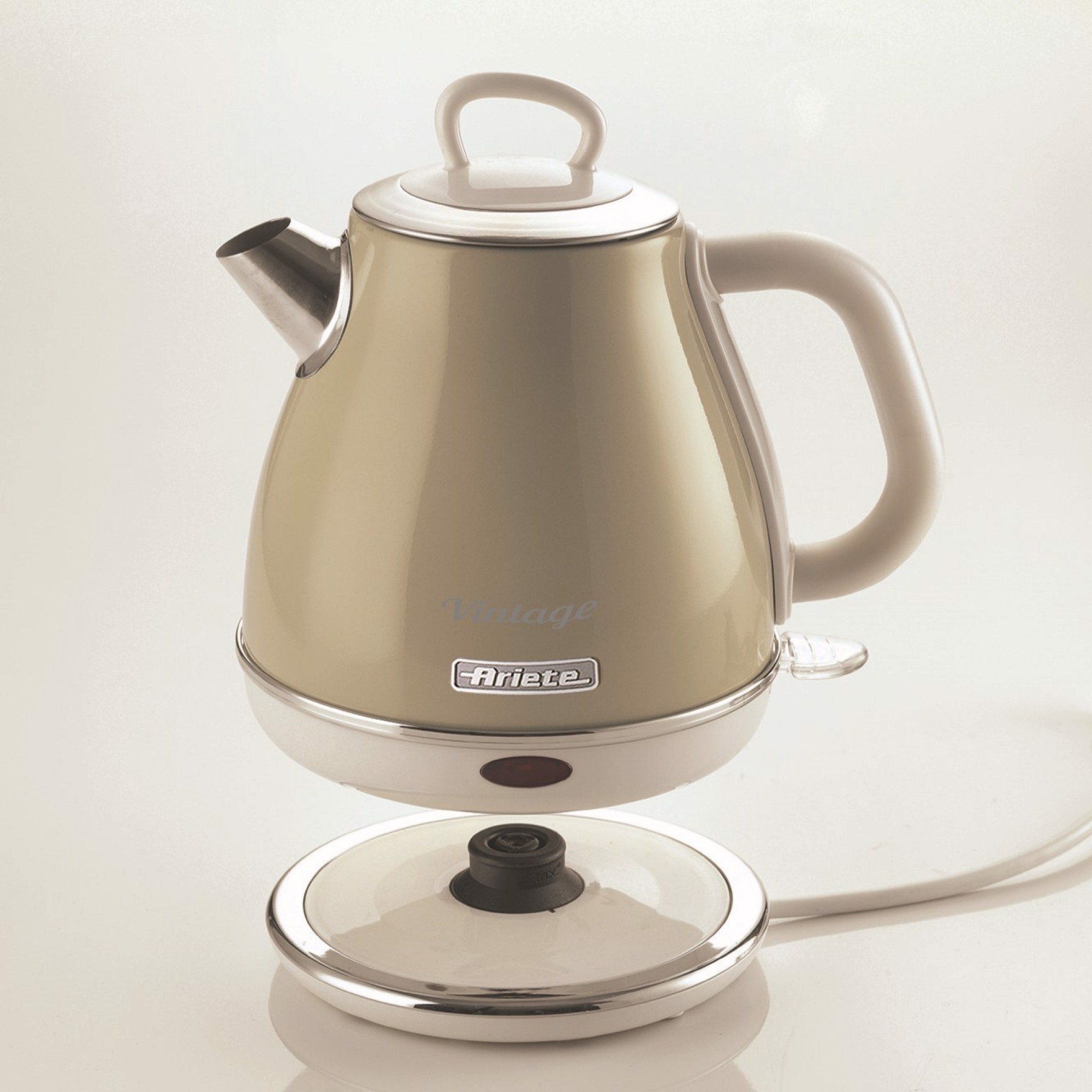 Elegant and modern forms inspired by a timeless Vintage style, merge with the modern efficiency of Ariete’s technical solutions, giving life to a complete range of small appliances. Initially dedicated to breakfast solutions, today Vintage line products embrace multiple food preparation areas. The range continues to be enriched year after year, to meet the growing needs of consumers. The new kettle with a 1 L capacity (model 2868), confirms the winning features characterising the range: the strong retro lines, the metal body and the three colours available (green, blue, beige). Thanks to the cold walls that allow you to conveniently carry the kettle and place it on any surface outside its base, the ergonomic handle and the auto shut off system, this accessory becomes a safe and easy to use companion, ideal for your moments of relaxation, alone or in the company of others.Style in the kitchen: its unique shapes and pastel colours make the kettle a unique decor element, perfect to enrich your kitchenSwitches itself off: when the kettle reaches the right temperature it switches itself off, ensuring maximum safety and peace of mindAlso use it for pasta: boil water in just 3 minutes and use it to continue cooking your pasta. A effective trick that saves precious timeCordless base: the 360° cordless base allows you to detach the body of the kettle and bring it directly to the table to serve the prepared drinks