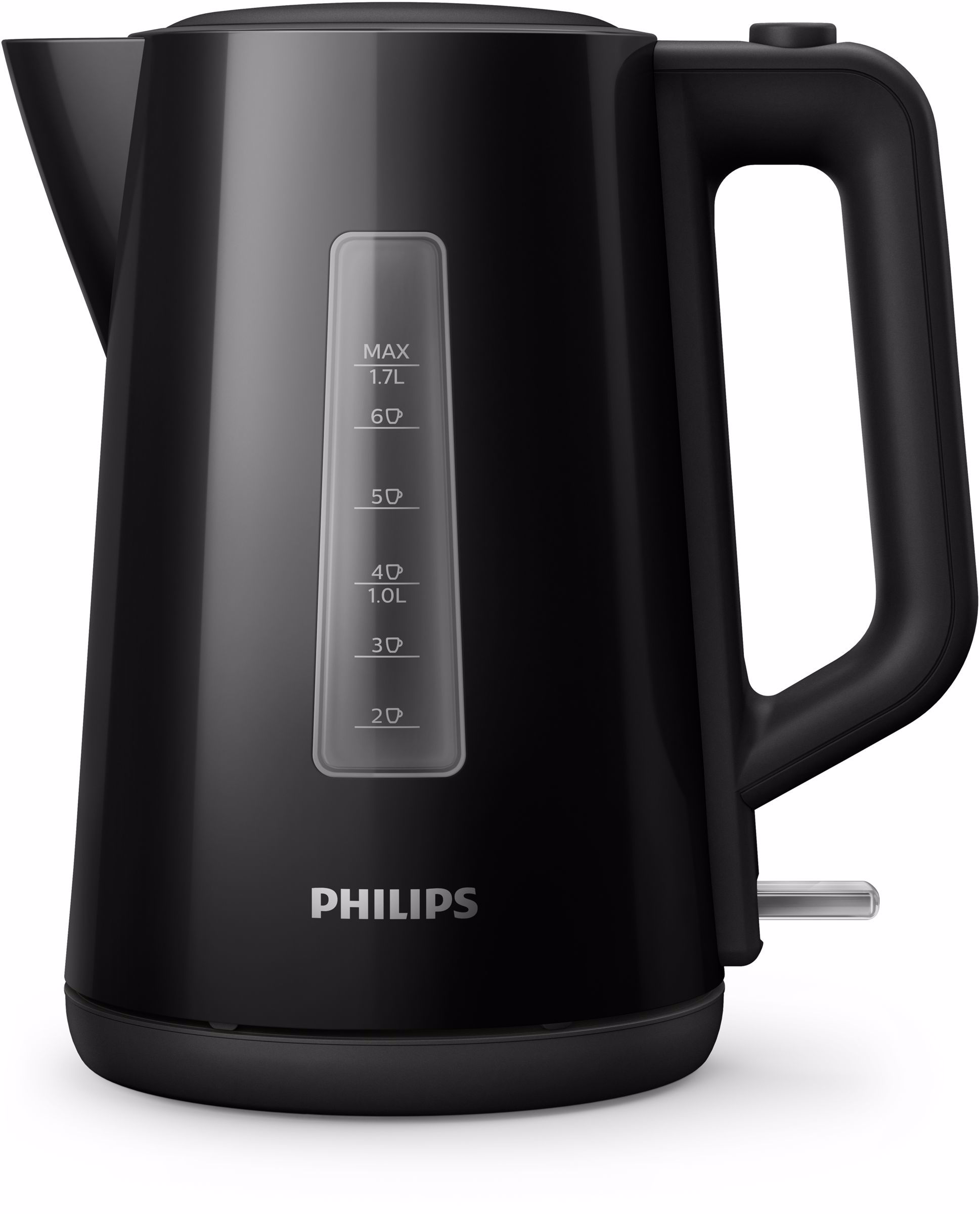 Med den nye Philips-elkedel i plast med en kapacitet på 1,7 l, automatisk åbning af låg og lysindikator kan du på ingen tid nemt lave din yndlingsdrik.