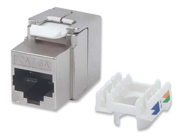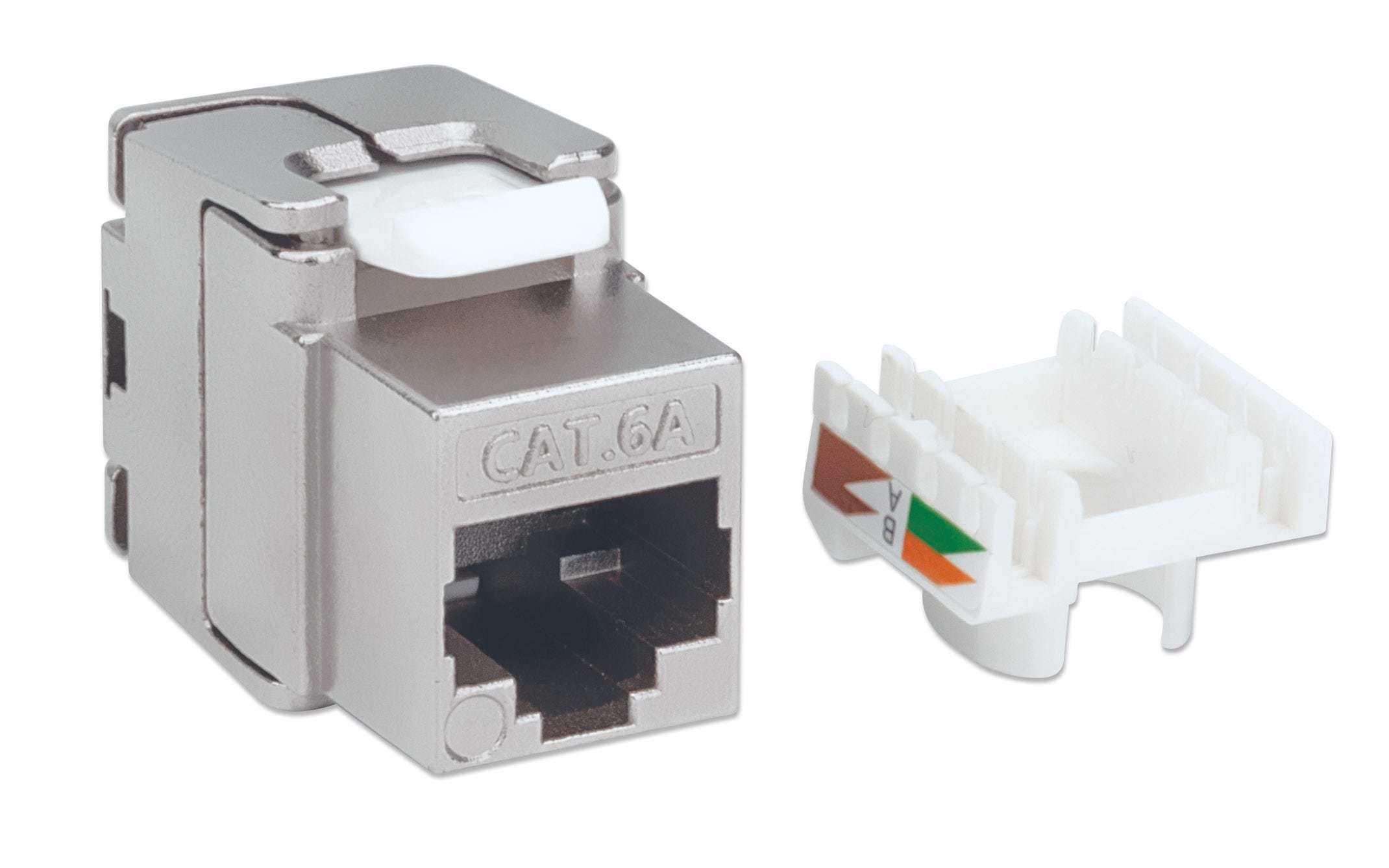 With a zinc die-cast housing and full shielding, the Intellinet Cat6a Keystone Jack ensures premium quality connections for 10-Gigabit Ethernet networks. Its tool-less design and compatibility with 110 and Krone Punch-Down Tools make termination fast and easy.