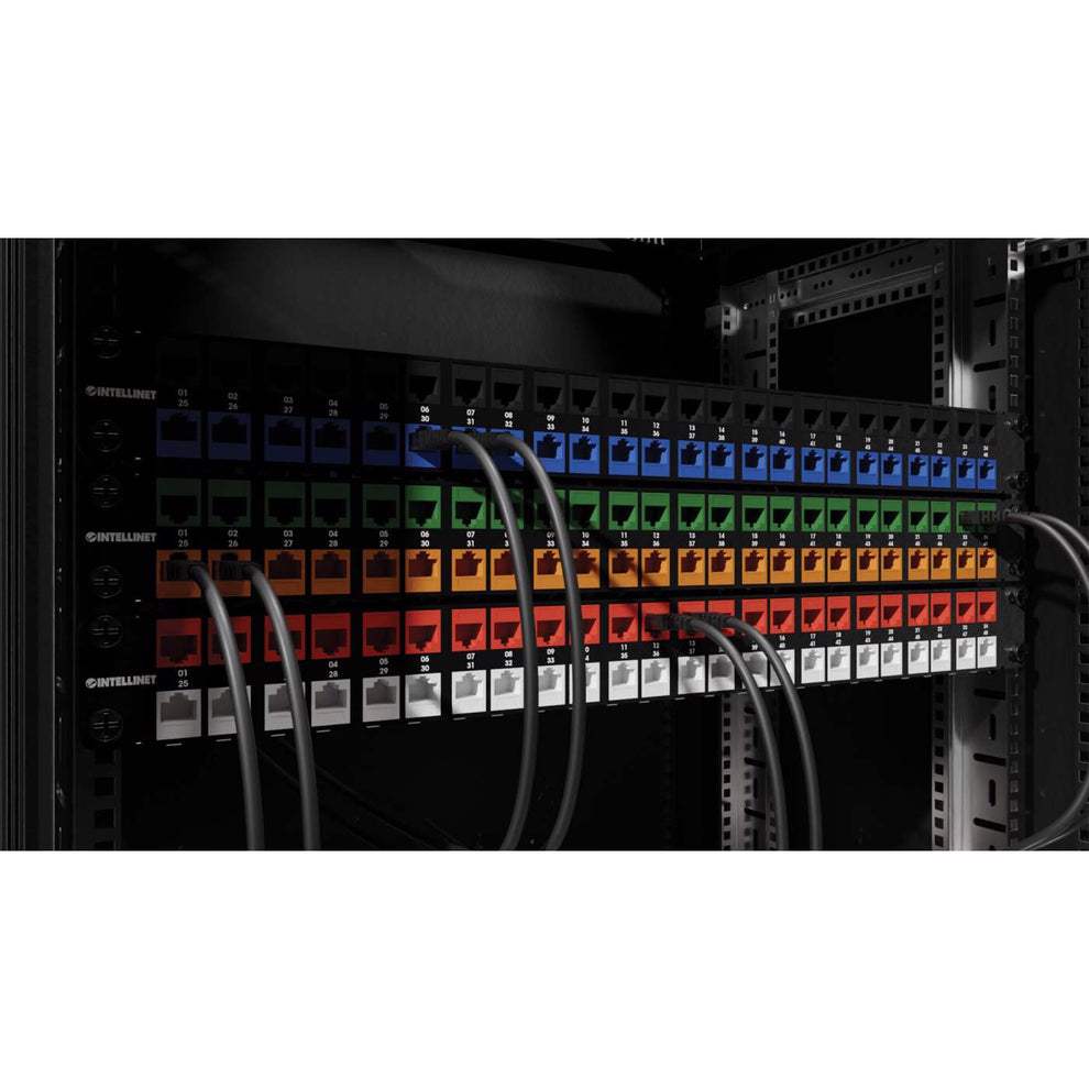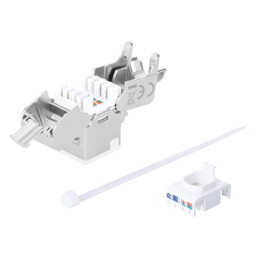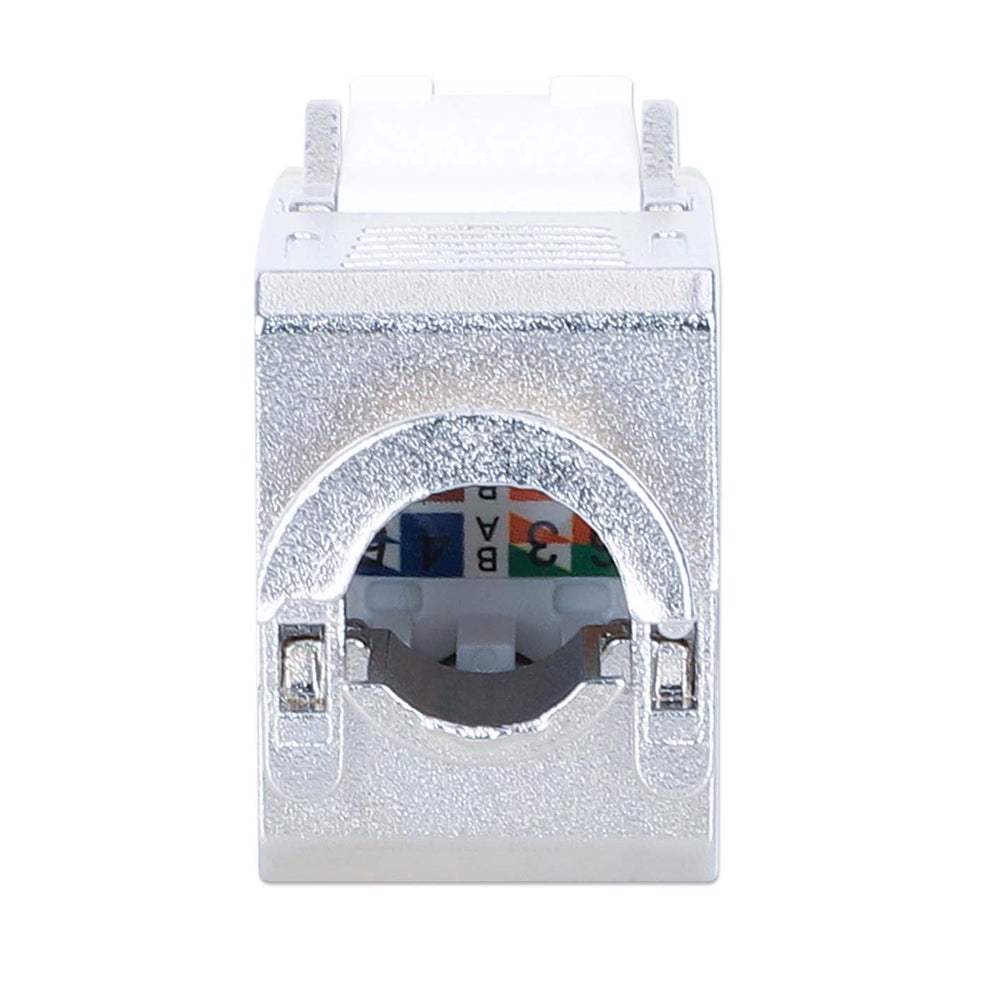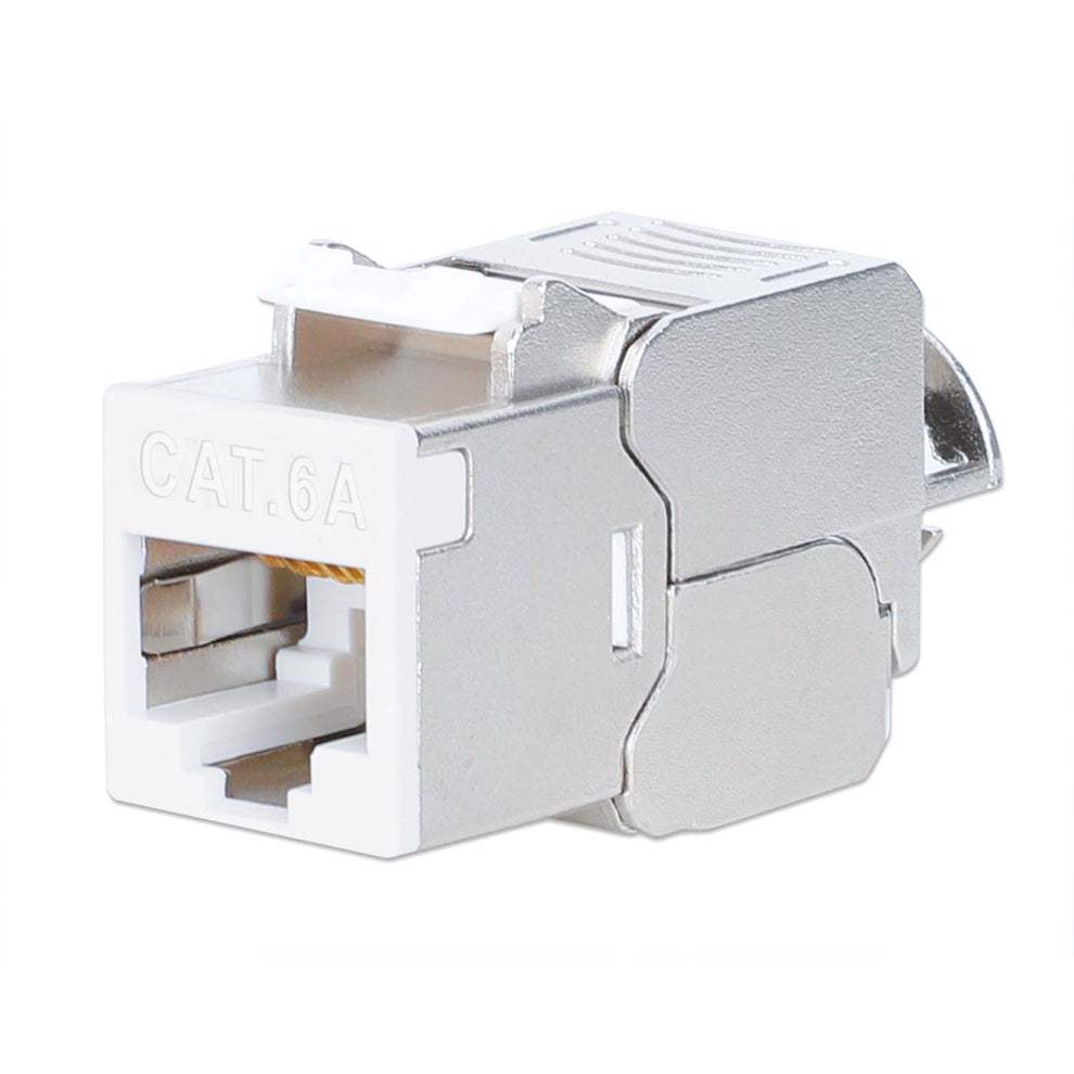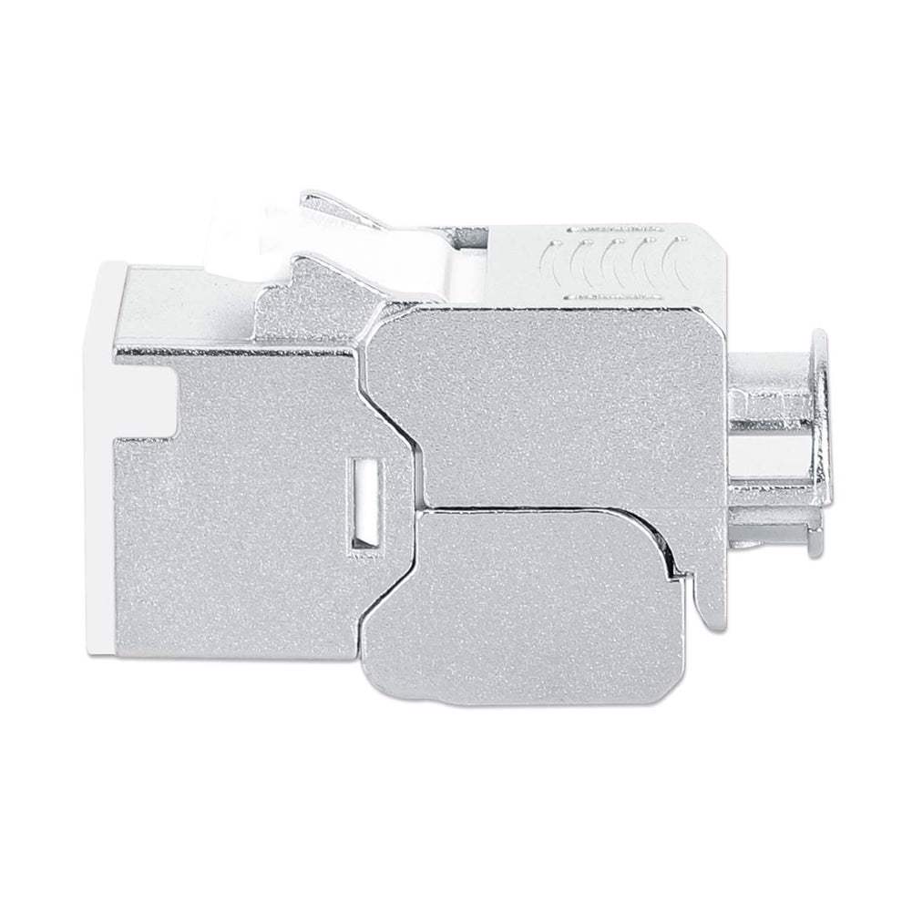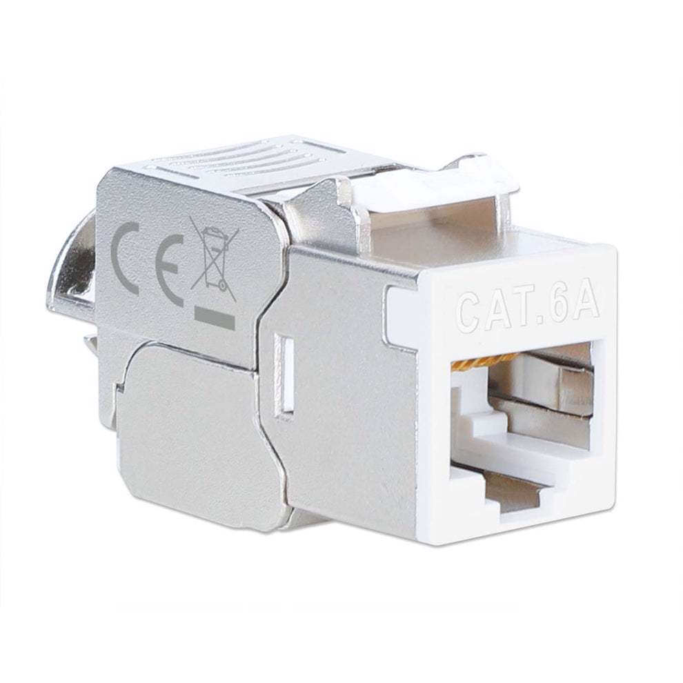 The Cat6a 10G Shielded Toolless Slim Keystone Jack, Black from Intellinet Network Solutions is designed for quick, seamless side-by-side deployment. Without any special tools, this module easily snaps into blank patch panels, wall plates or surface connection boxes. It is suitable for solid conductor cables in high-performance network applications up to 10GBase-T and PoE applications up to IEEE802.3bt / PoE++ / 4PPoE / Ultra PoE. For maximum signal integrity, it is equipped with gold-plated contacts and 360° STP shielding.