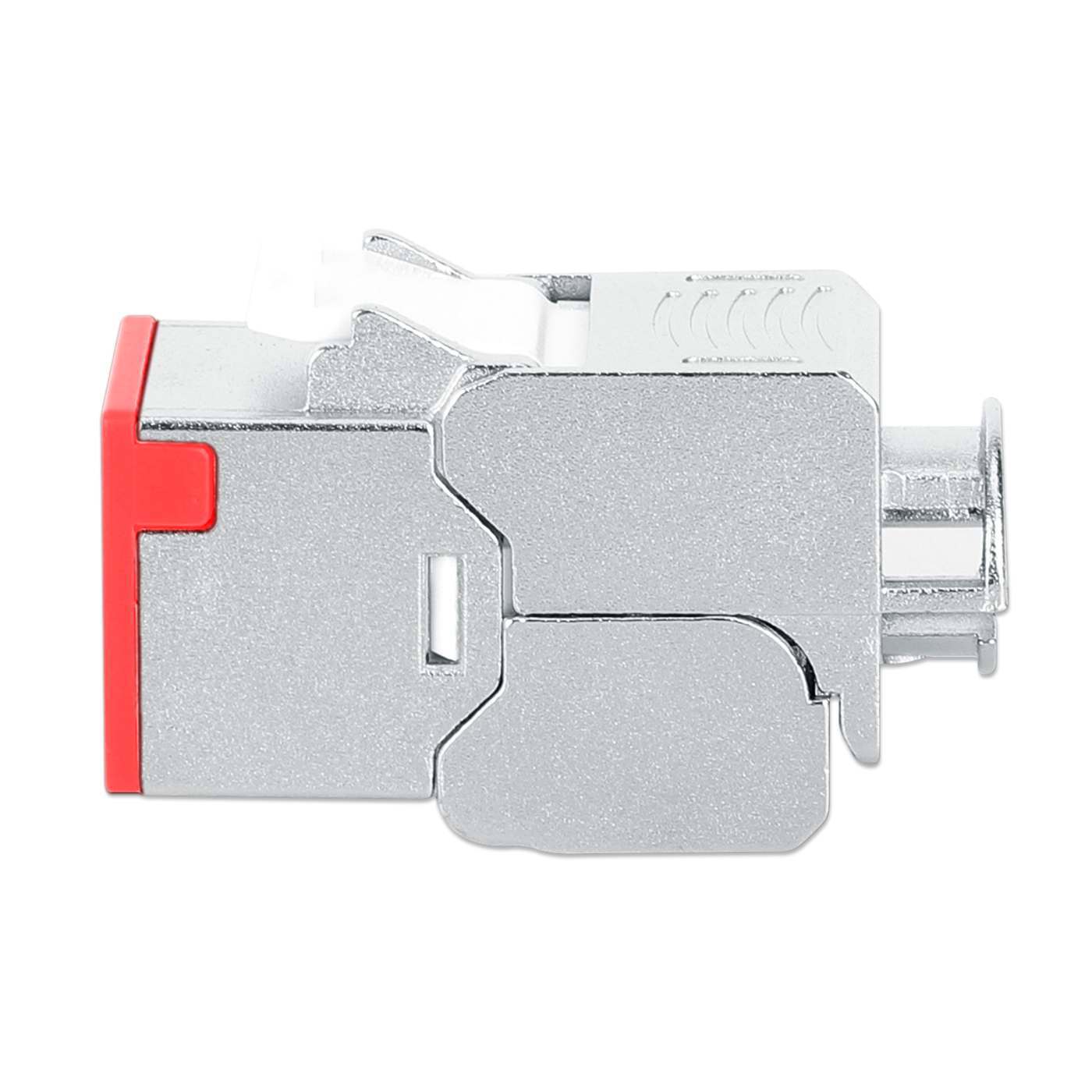 The Cat6a 10G Shielded Toolless Slim Keystone Jack, Black from Intellinet Network Solutions is designed for quick, seamless side-by-side deployment. Without any special tools, this module easily snaps into blank patch panels, wall plates or surface connection boxes. It is suitable for solid conductor cables in high-performance network applications up to 10GBase-T and PoE applications up to IEEE802.3bt / PoE++ / 4PPoE / Ultra PoE. For maximum signal integrity, it is equipped with gold-plated contacts and 360° STP shielding.