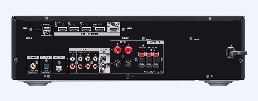 Experience the bigger, clearer picture when you upgrade your home theater setup with the STR-DH590. The 5.2ch AV receiver brings movies to life with 4K HDR pass through, Dolby Vision™ and flexible surround sound. Bring all your entertainment together with BLUETOOTH® technology and multiple inputs.