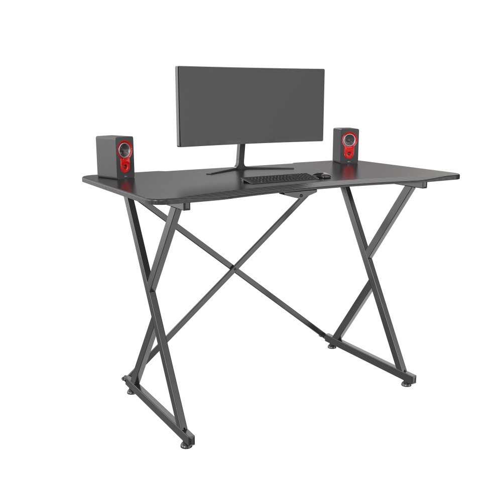 This gaming desk has an elegant carbon fiber weave and the large playing surface allows for plenty of space for monitors, keyboards and other play equipment.