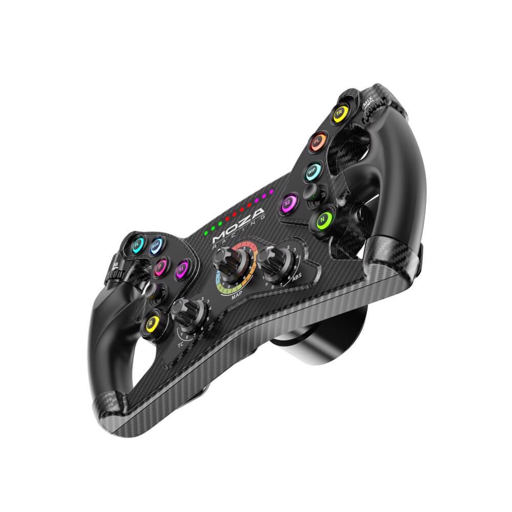 The MOZA KS offers 70 fully programmable input signals for all driving needs. It features thumb and rotary encoders for faster on-the-fly car adjustments, including brake bias, traction control, engine maps, ABS, and more. The two joysticks enable full menu navigation, keeping your hands on the wheel and eyes on the road.