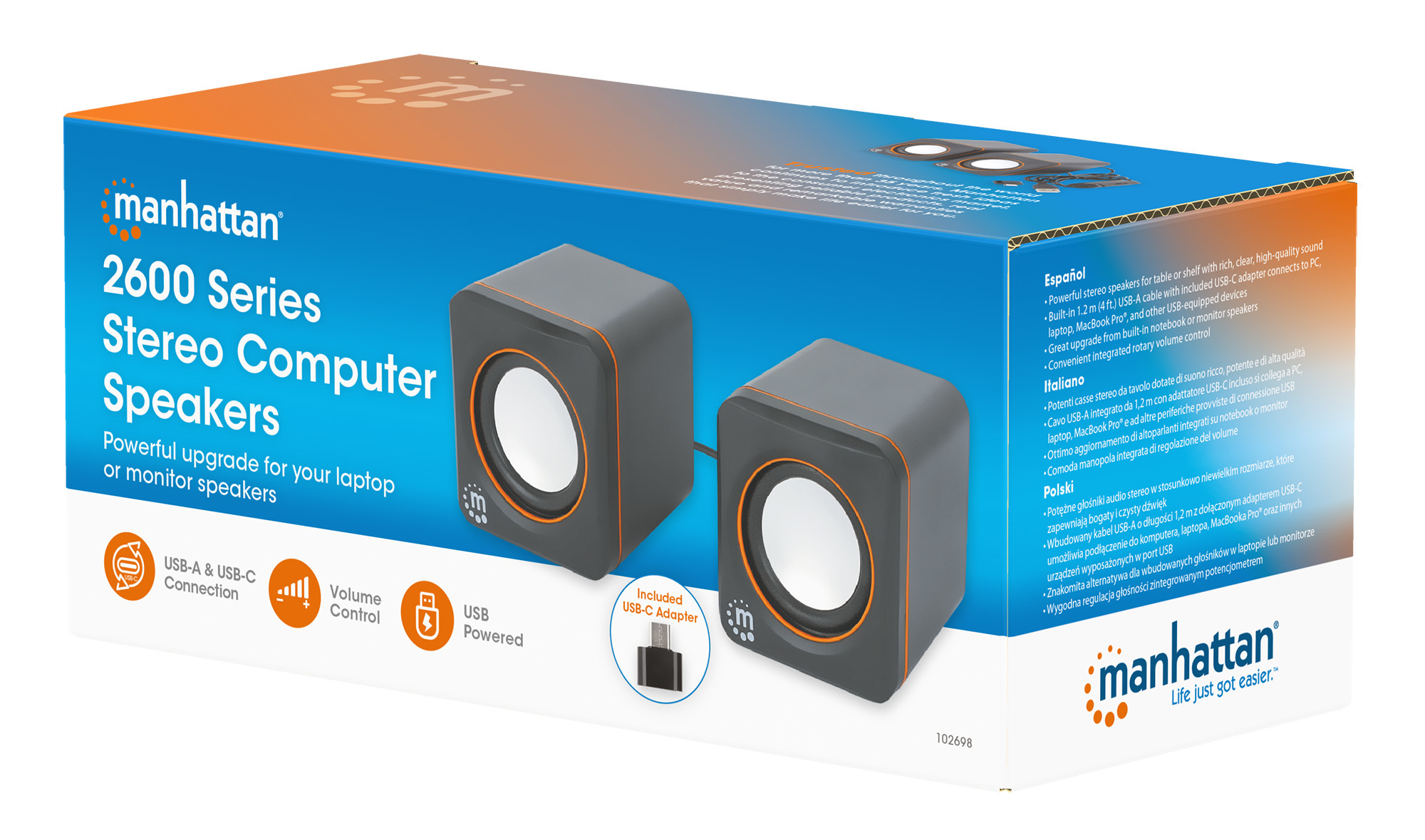 Improve your audio setup with the Manhattan 2600 Series Stereo Computer Speakers, designed to deliver rich, clear, and high-quality sound whether placed on a table or shelf. These powerful stereo speakers are the perfect upgrade from built-in notebook or monitor speakers, offering a superior listening experience for music, gaming, movies, and more.