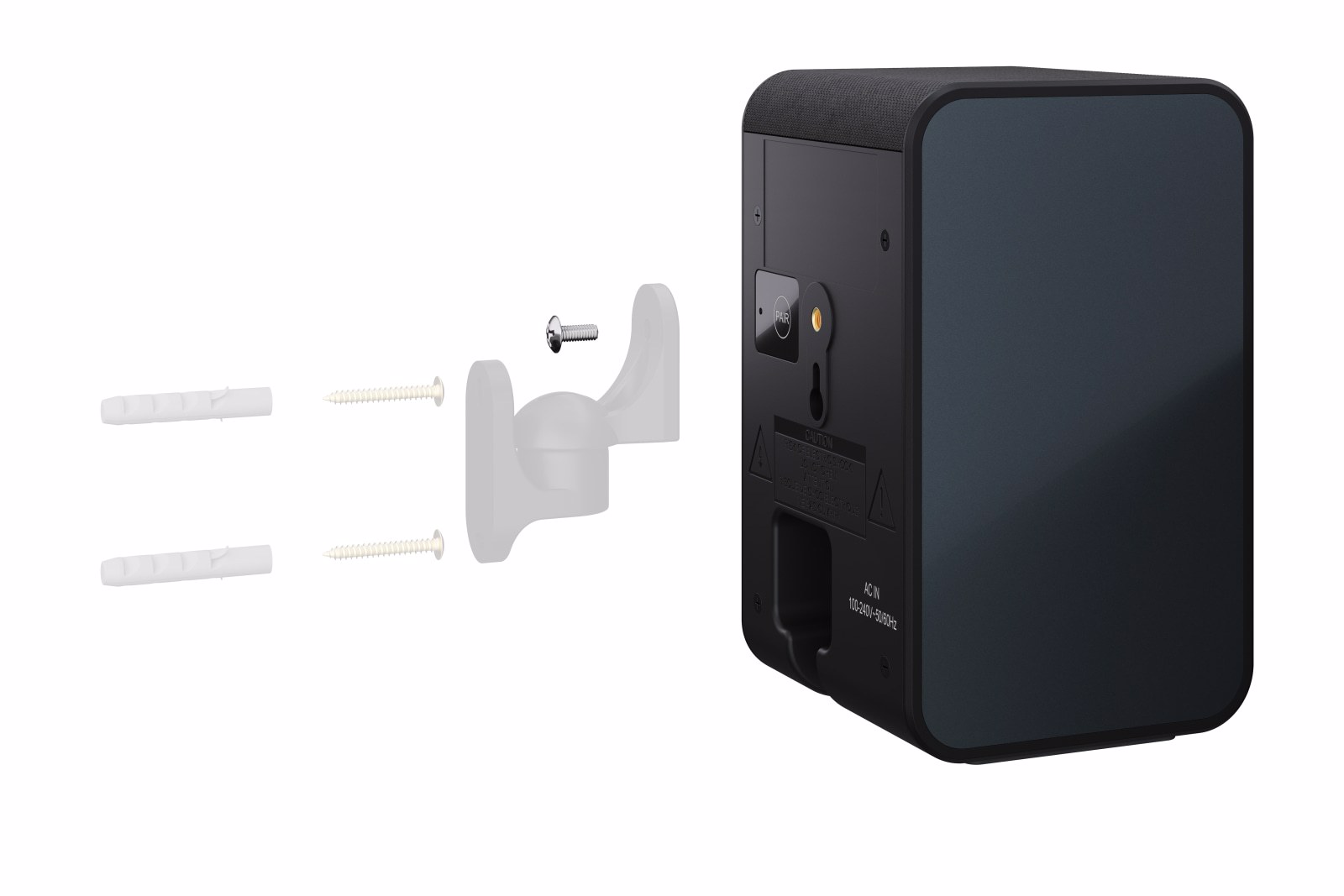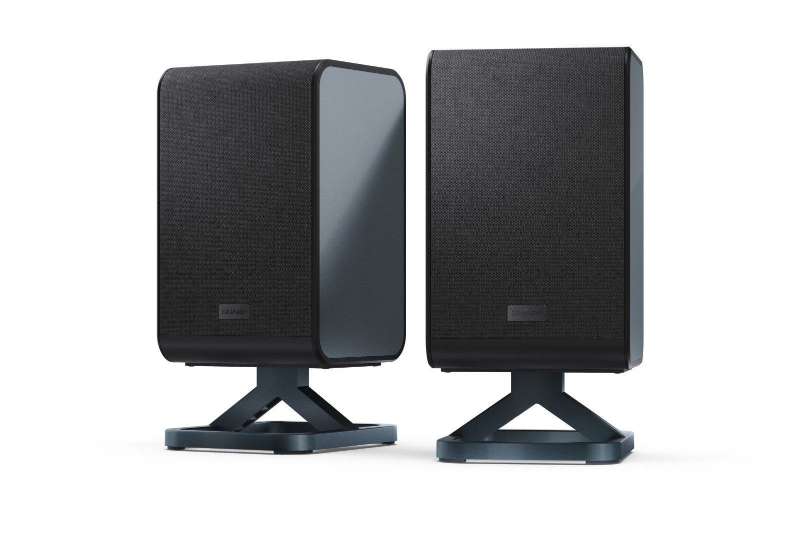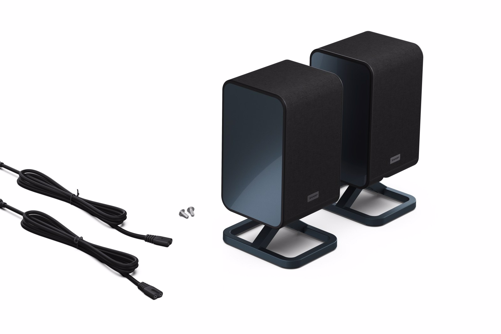 Sharp “Q” Rear Surround Speakers offer versatile mounting options. Easily position them on a wall, furniture, or stands using the included low feet or dedicated mounts.