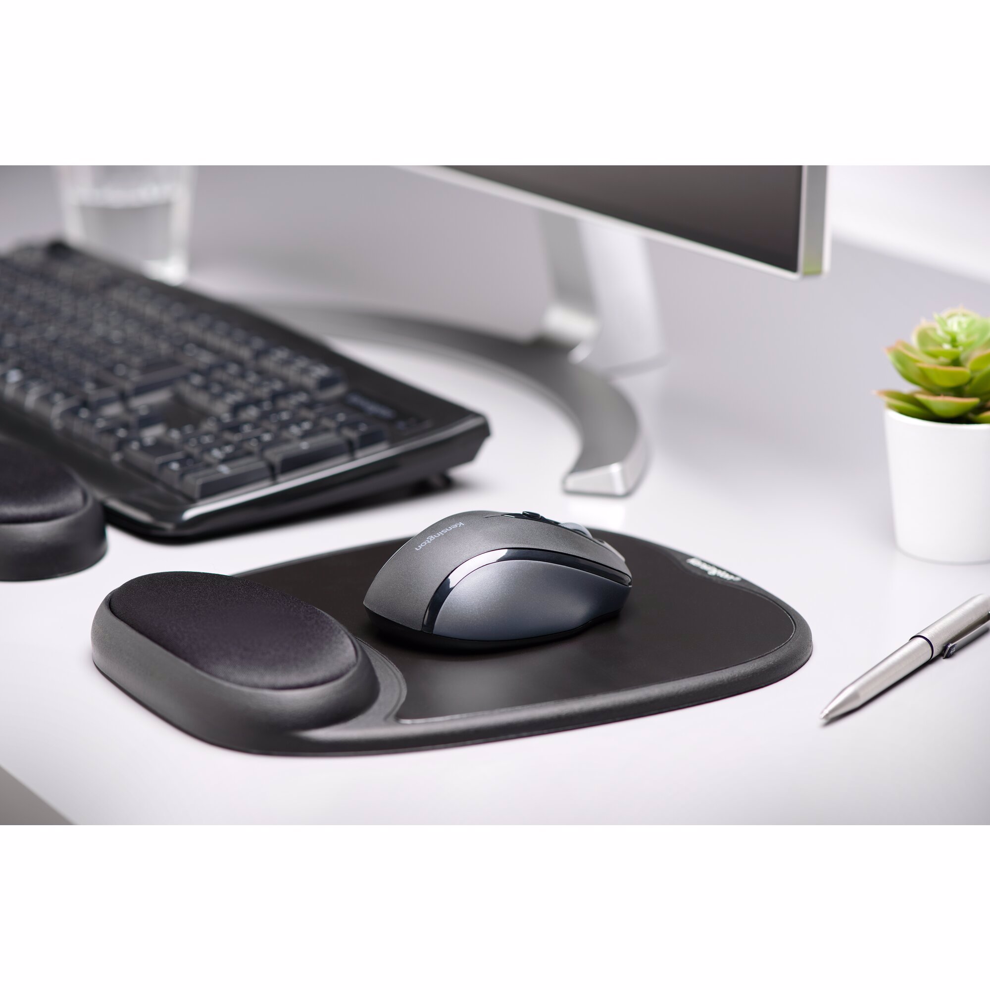 Kensington Musemåtte med integreret håndledsstøtte i gel, sort, Sort, Monokromatisk, Gele, Håndledsstøtte