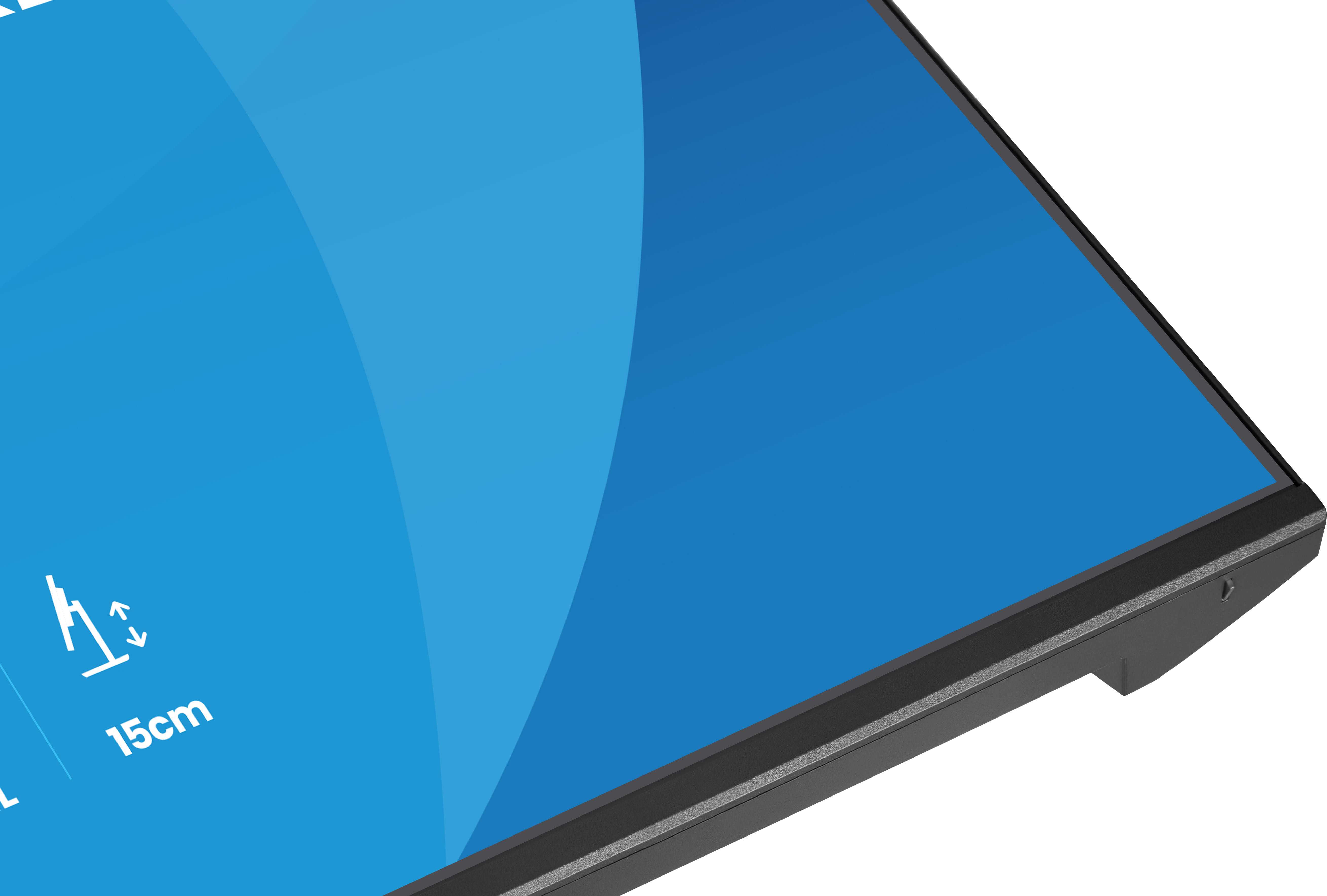 The fully adjustable ergonomic stand helps you stay comfortable and focused, with 15cm height adjustment plus tilt, swivel aBuilt-in speakers, a two-port USB hub, HDMI and DisplayPort inputs, and a headphone socket keep your workspace simple and connected. With EPEAT registration, TCO10 compliance and an Energy Label C rating, it’s a smart, sustainable choice that works as hard as you do.nd pivot functions, so you can easily set the screen to match your posture.