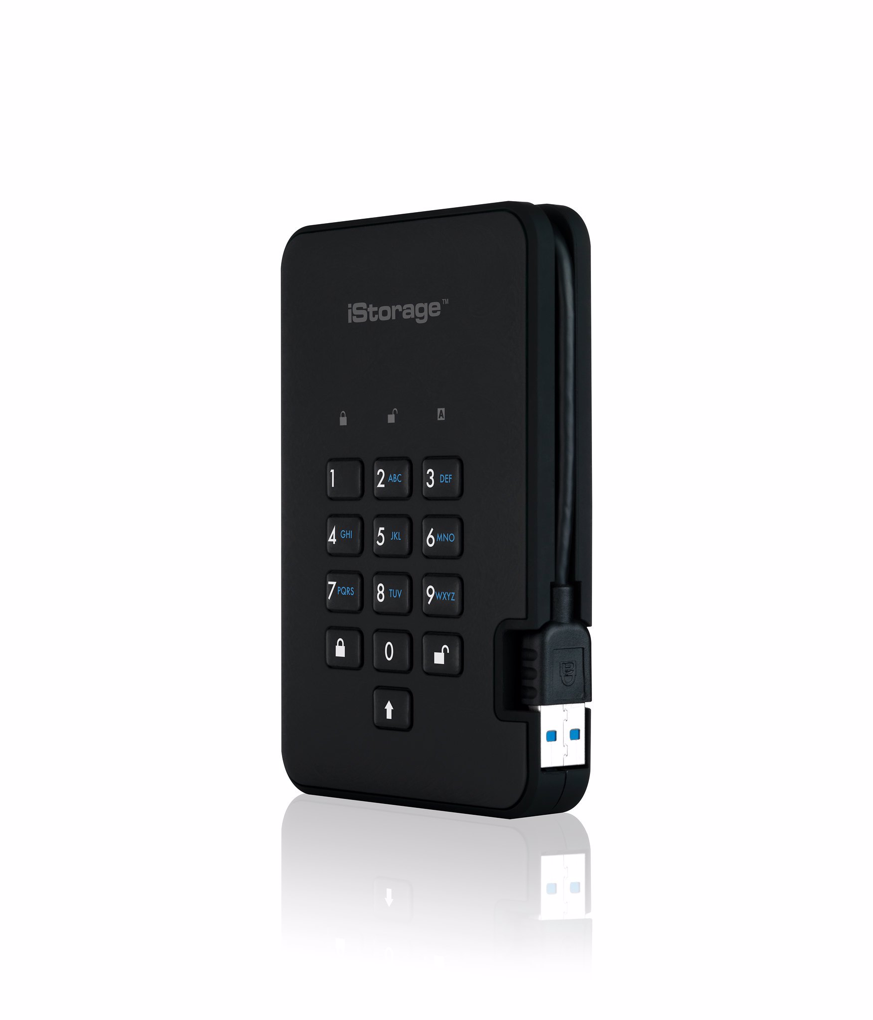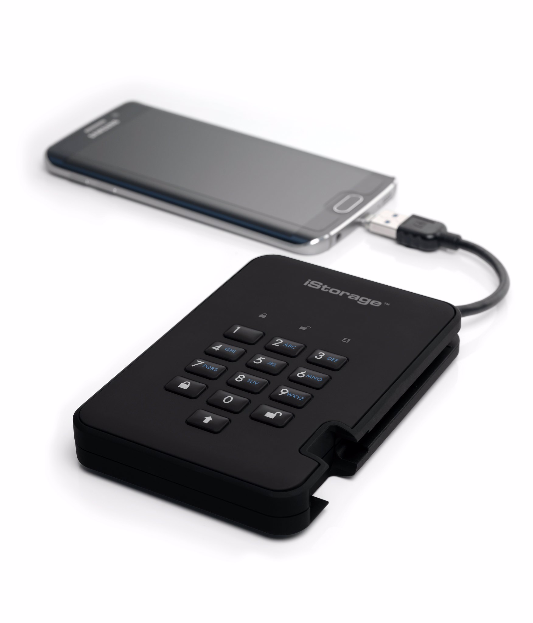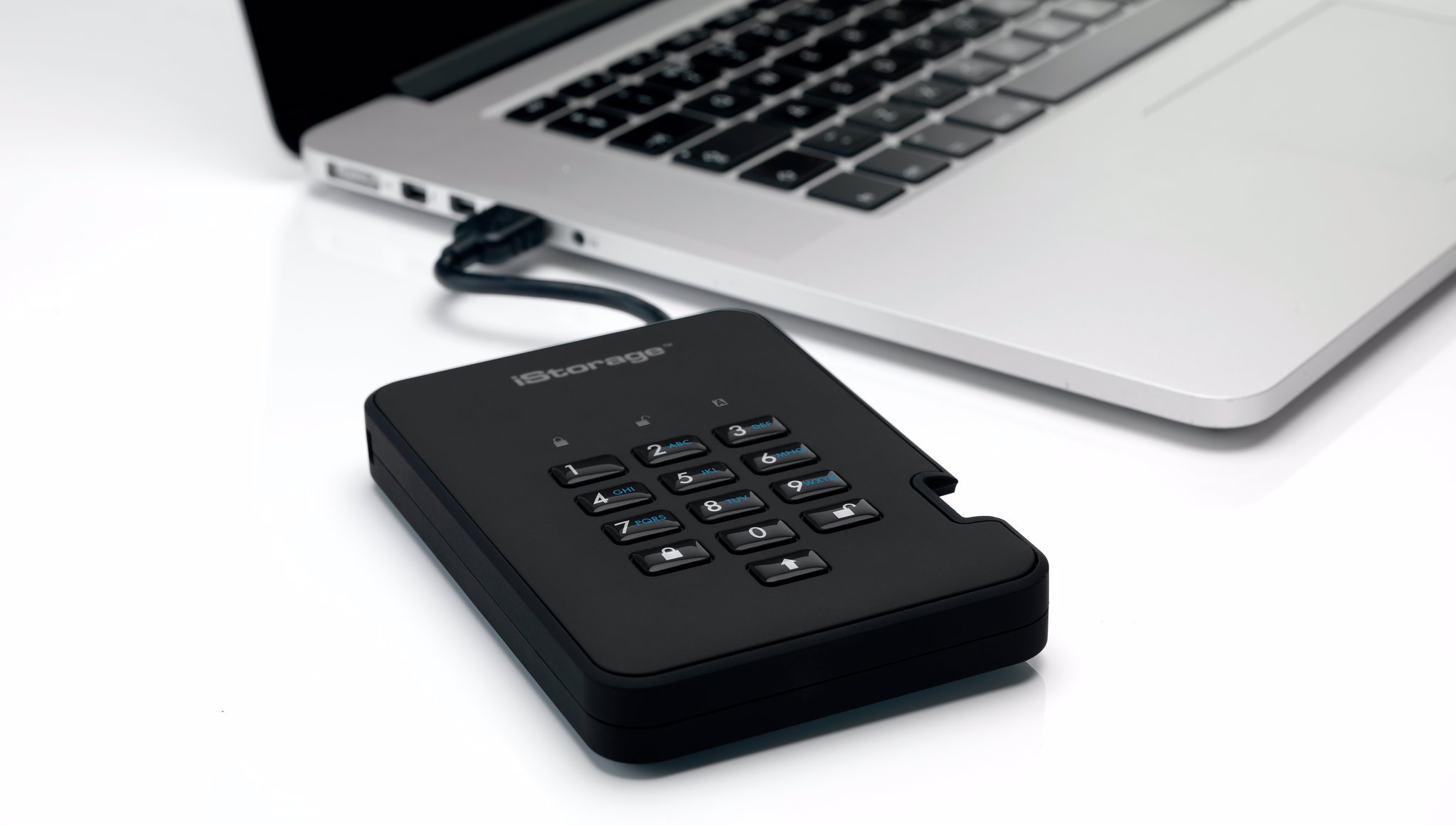 An easy to use ultra-secure, PIN authenticated, hardware encrypted, portable USB 3.2 hard drive with real-time AES-XTS 256-bit hardware encryption, software free design and super-fast data transfer speeds.