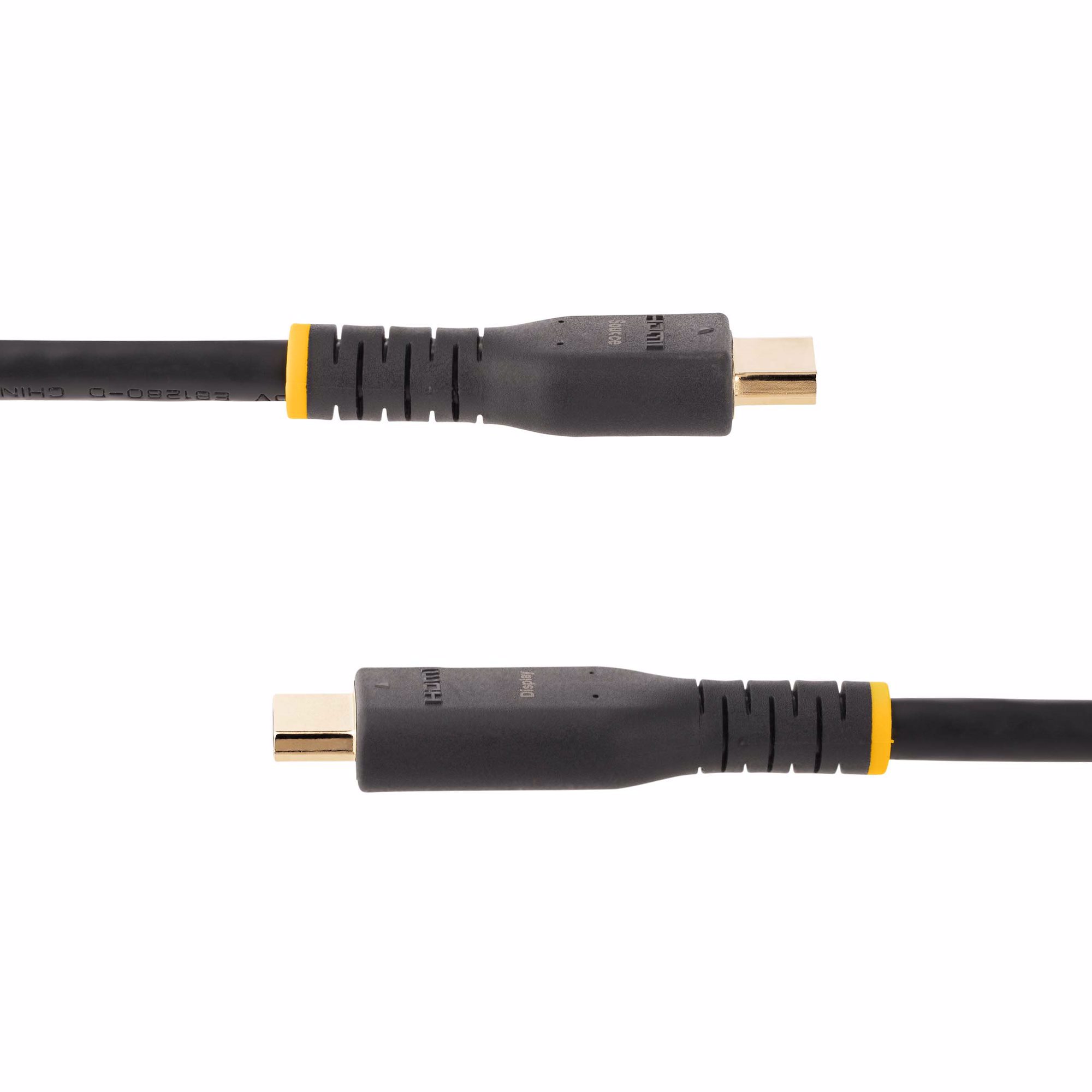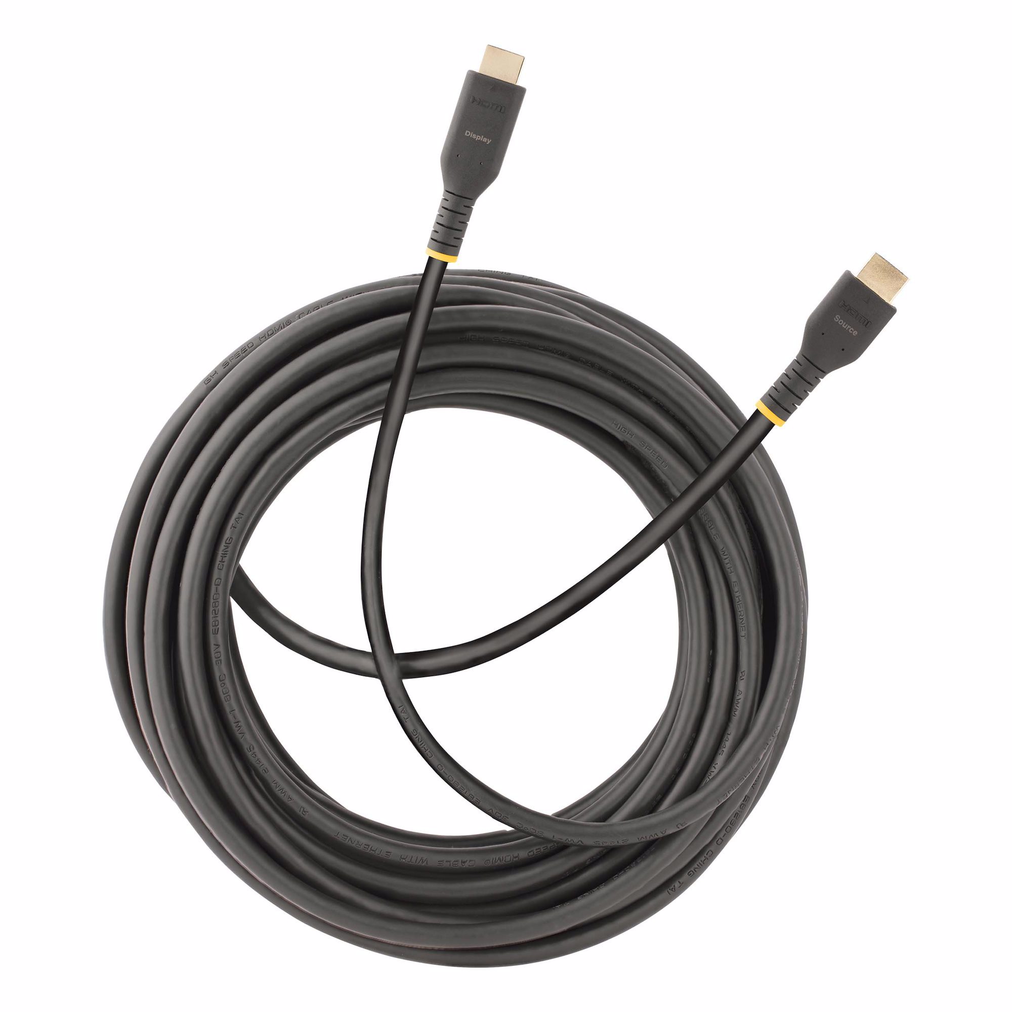 The cable features built-in amplifier circuitry, which actively boosts the HDMI signal, with no external power required. It is the perfect solution for longer transmissions without any signal loss. It features source and display labels on the connectors to ensure the display and source are properly connected.