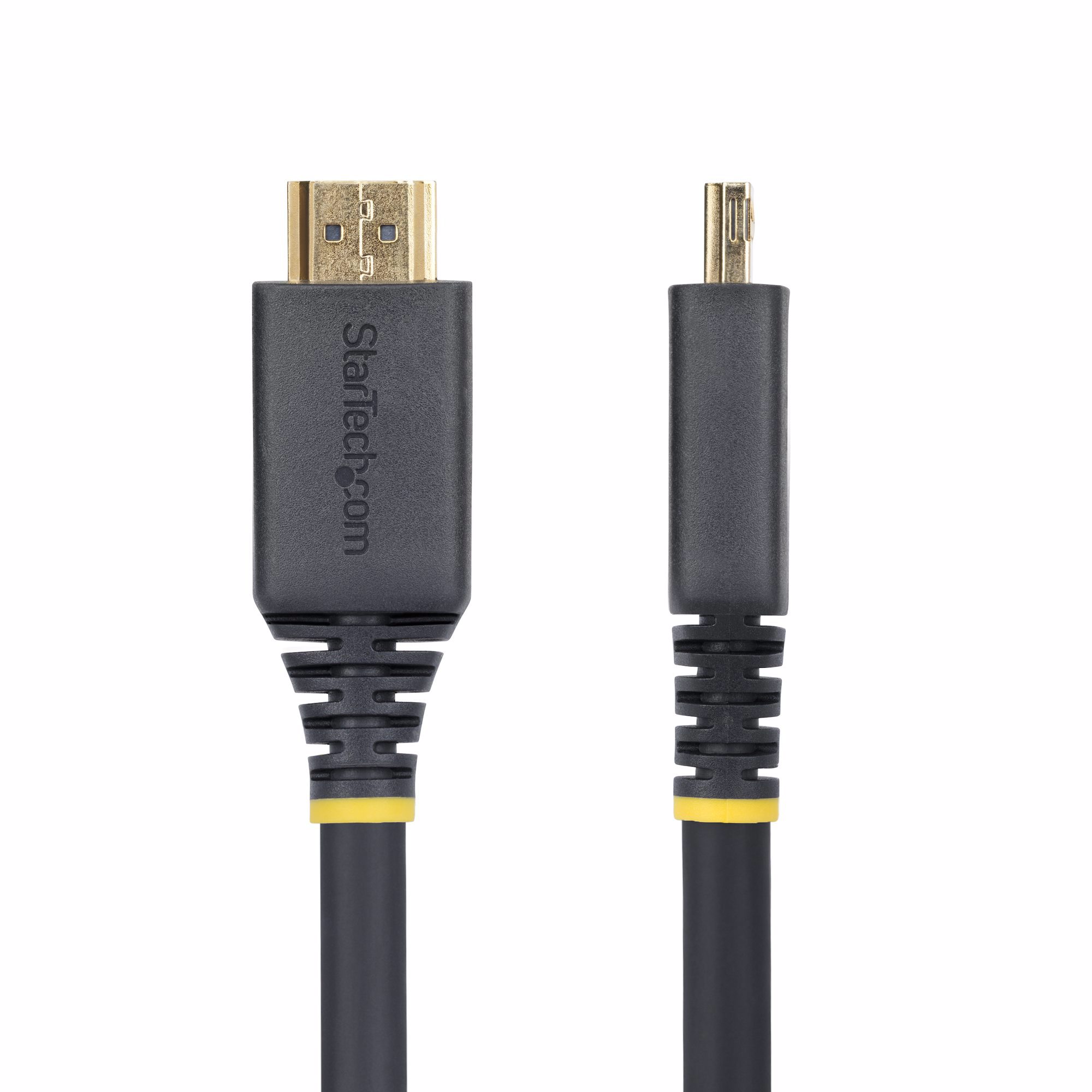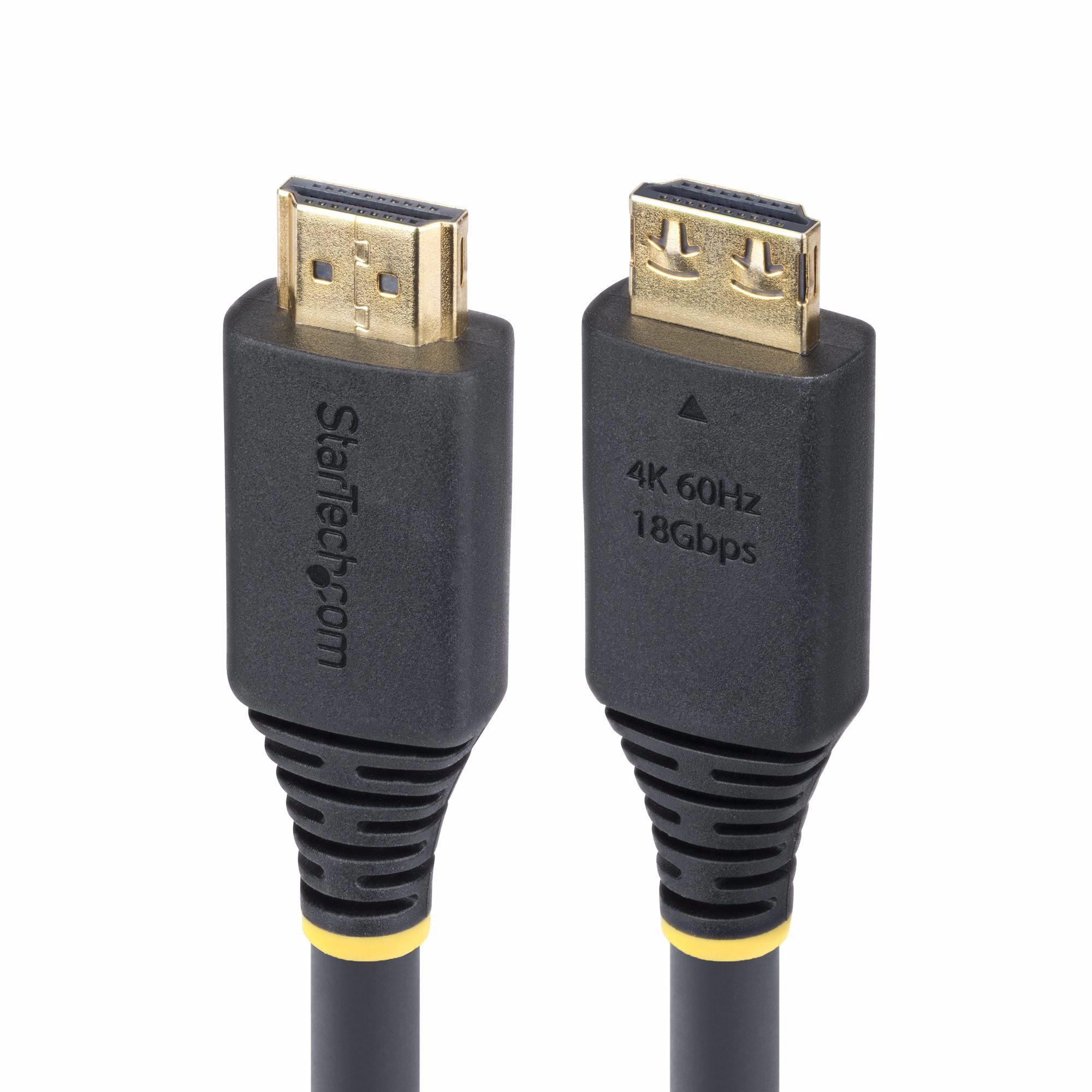 The HDMI UHD Cord features gold-plated gripping connectors to prevent accidental disconnections. The connectors attach securely to HDMI device ports, making this cable ideal for mounted and critical setups such as security systems and HDMI switches.
