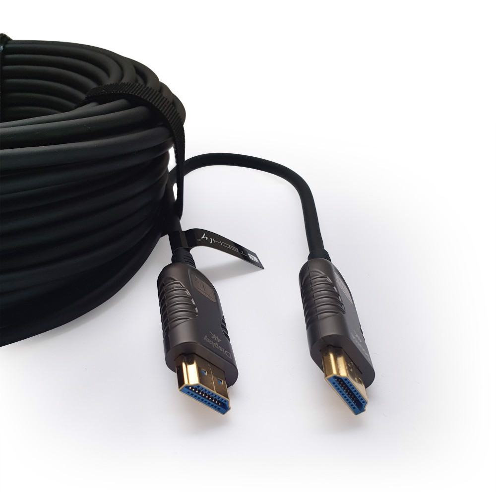 The active high-speed HDMI audio video cable is characterized by copper and fiber conductors, offering a lighter and more flexible structure ideal for installation in confined spaces and longer distances: the ideal solution for conference rooms, classrooms, and illuminated signs much more.