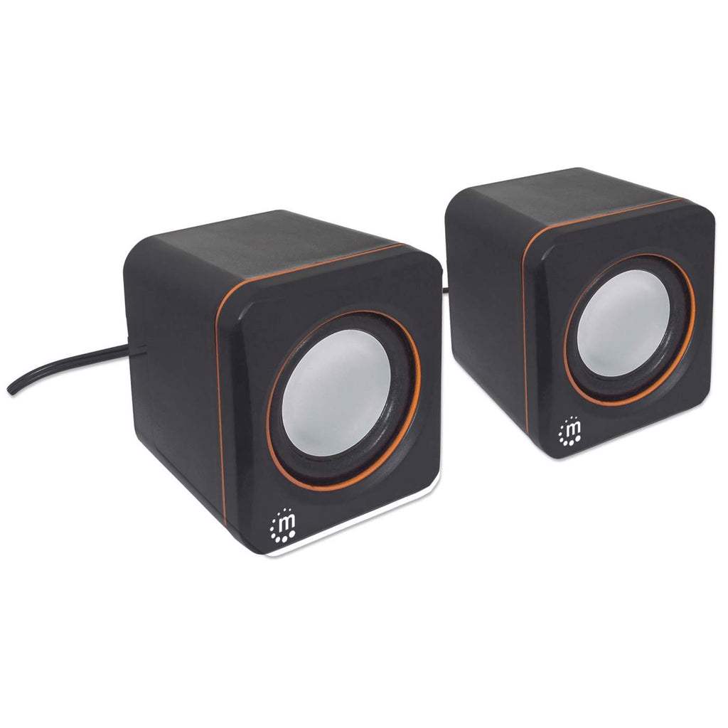 Maximize audio experiences with the Manhattan 2600 Series USB Mobile Speaker System. Its compact, USB design delivers rich, full-range sound from notebook computers, netbooks, portable CD/DVD players and other USB-equipped mobile media devices. Solid, well-built enclosures help re-create a balanced, full-spectrum frequency response. The built-in USB cable quickly connects without special drivers, batteries or an external power supply to easily share music, improve presentations or enjoy movies, games and other multimedia content. The Manhattan 2600 Series USB Mobile Speaker System makes an ideal audio replacement or upgrade for mobile computing and is an alternative to headphones for enjoying favourite stereo sounds.