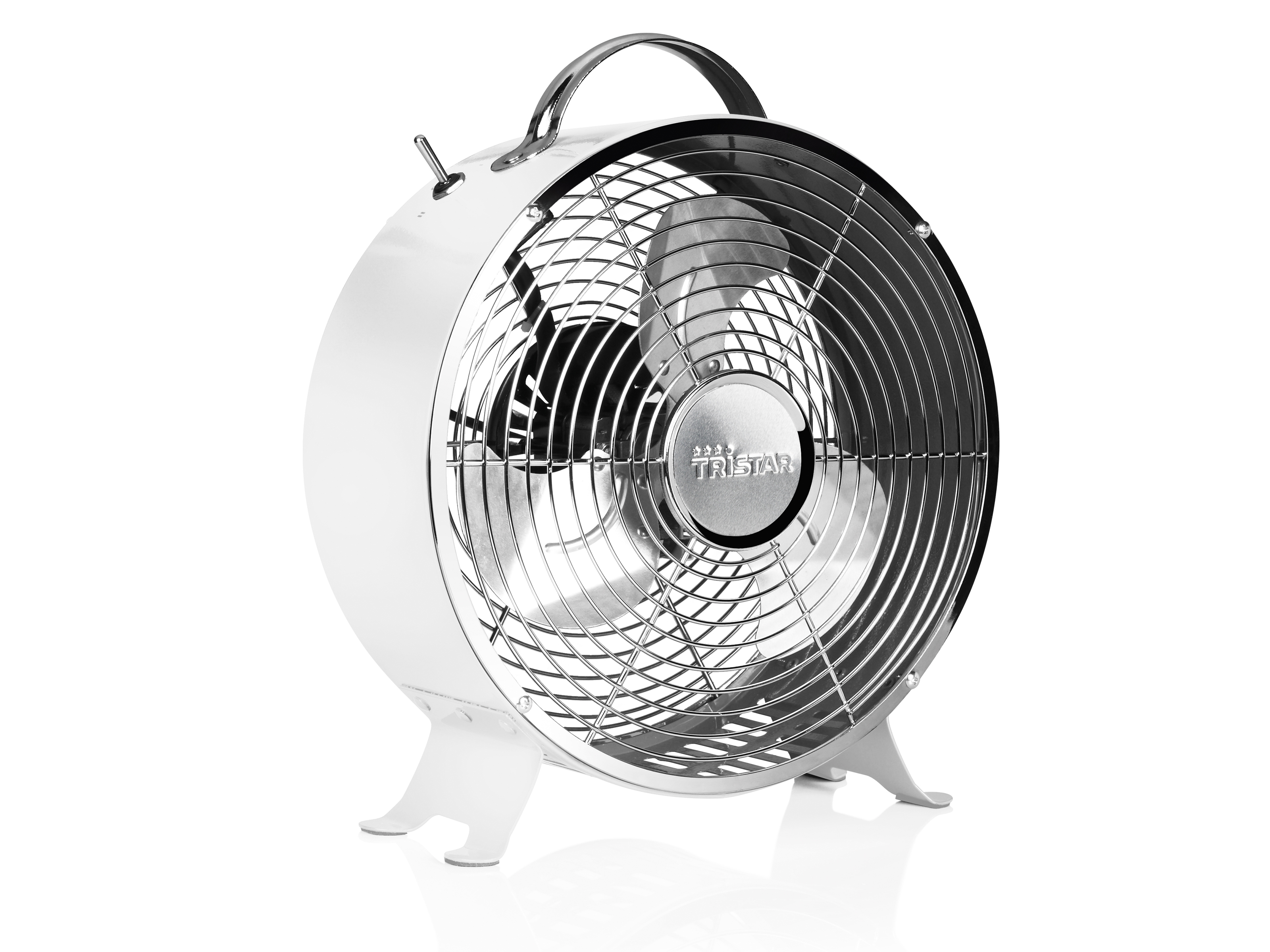 Stay cool during the warm summer days with the Tristar table fan. With a motor of 20 Watts and a 10 inch diameter this fan will keep you cool on warm days. It has two different speed settings so you can choose the airflow most comfortable for you. The metal retro table fan fits perfectly in every interior.