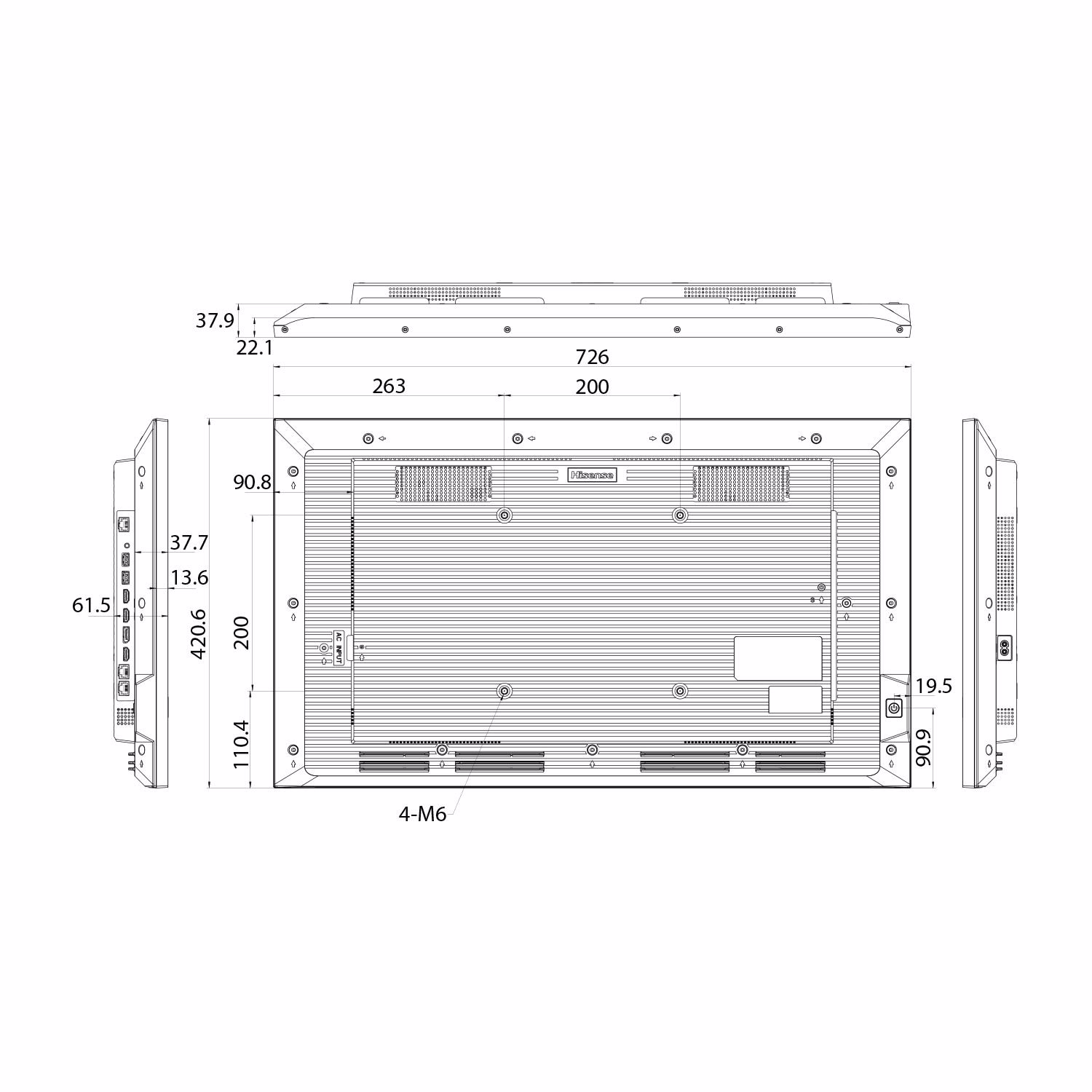 With a narrow bezel and symmetrical design, the display can be easily integrated into any environment. All terminals face outwards, ensuring the display hangs flush against the wall which saves space and facilitates installation.