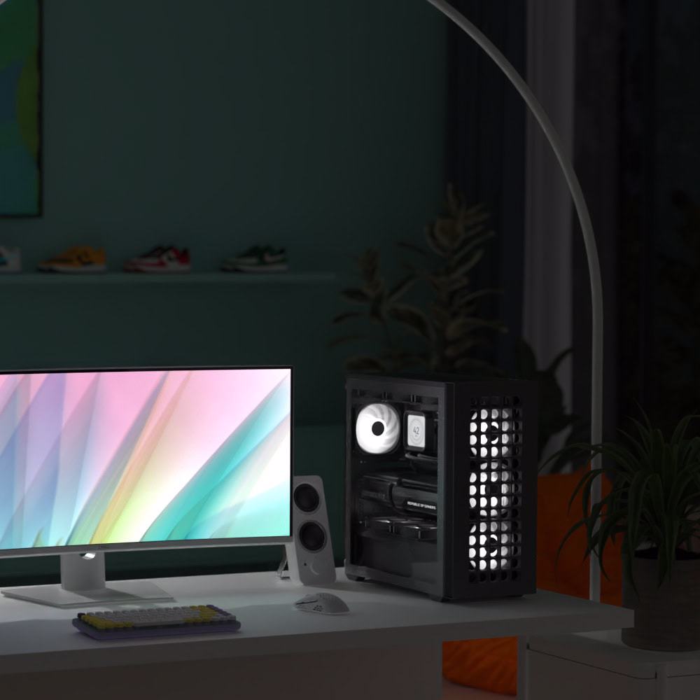 Easily manage your four pre-installed ARGB fans with the 5-port PWM ARGB control hub, giving you full control over your system’s visual aesthetics.