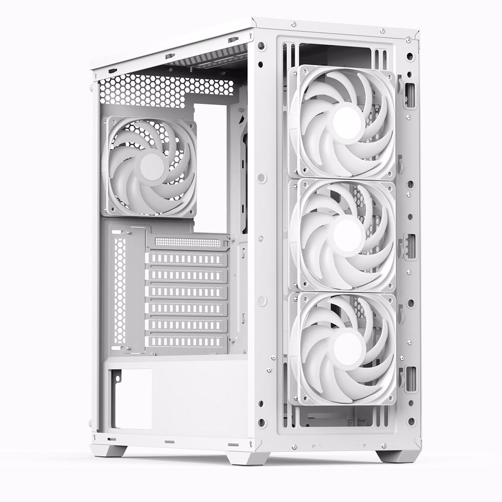 Experience superior airflow with our stylish mesh front panel design. This mid tower case supports powerful builds, accommodating liquid coolers up to 360mm and offering 11 fan slots for maximum cooling potential.