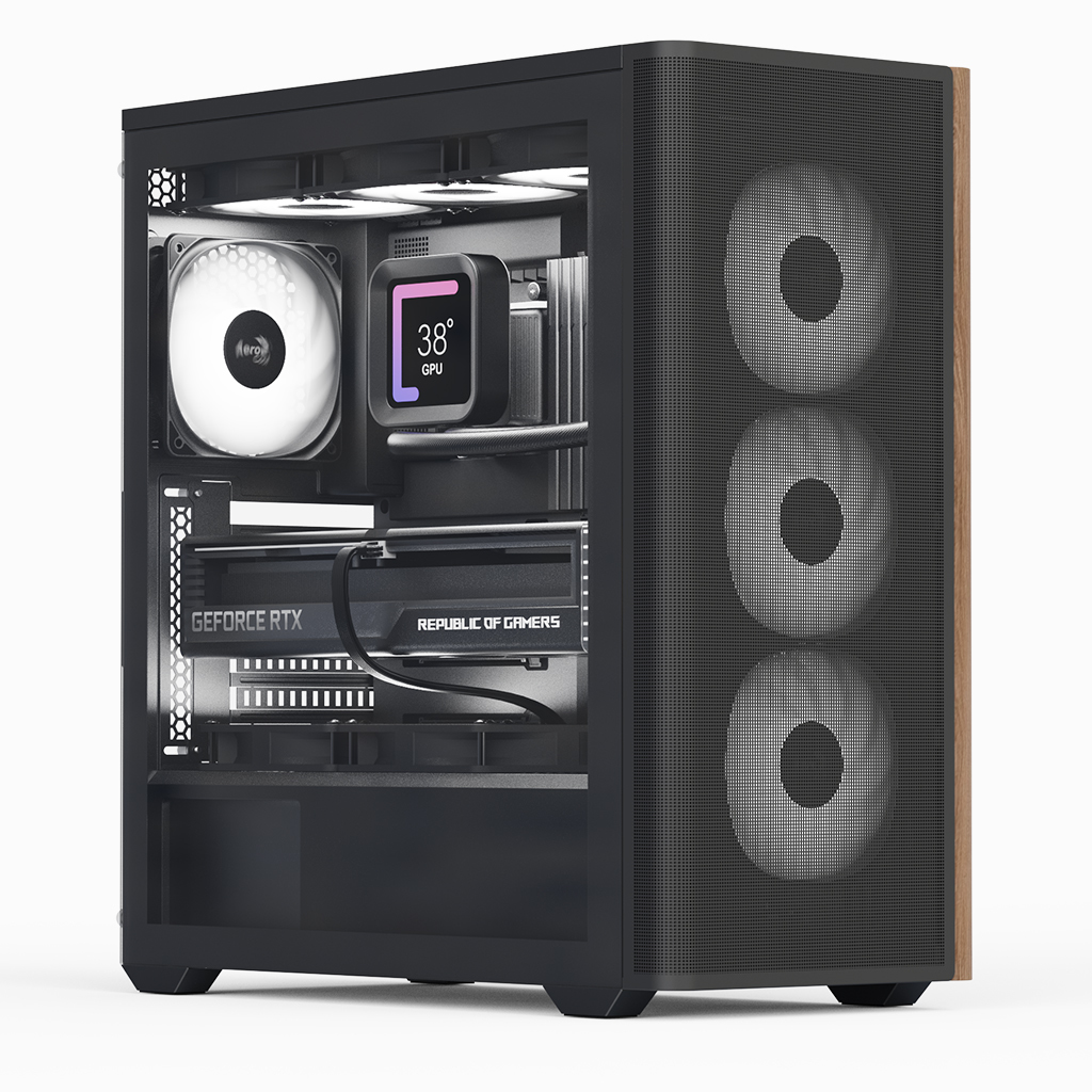 Sit back and enjoy one of our first-ever wood-accented PC cases, with a refined look designed to inspire a natural vibe within your desk space.
