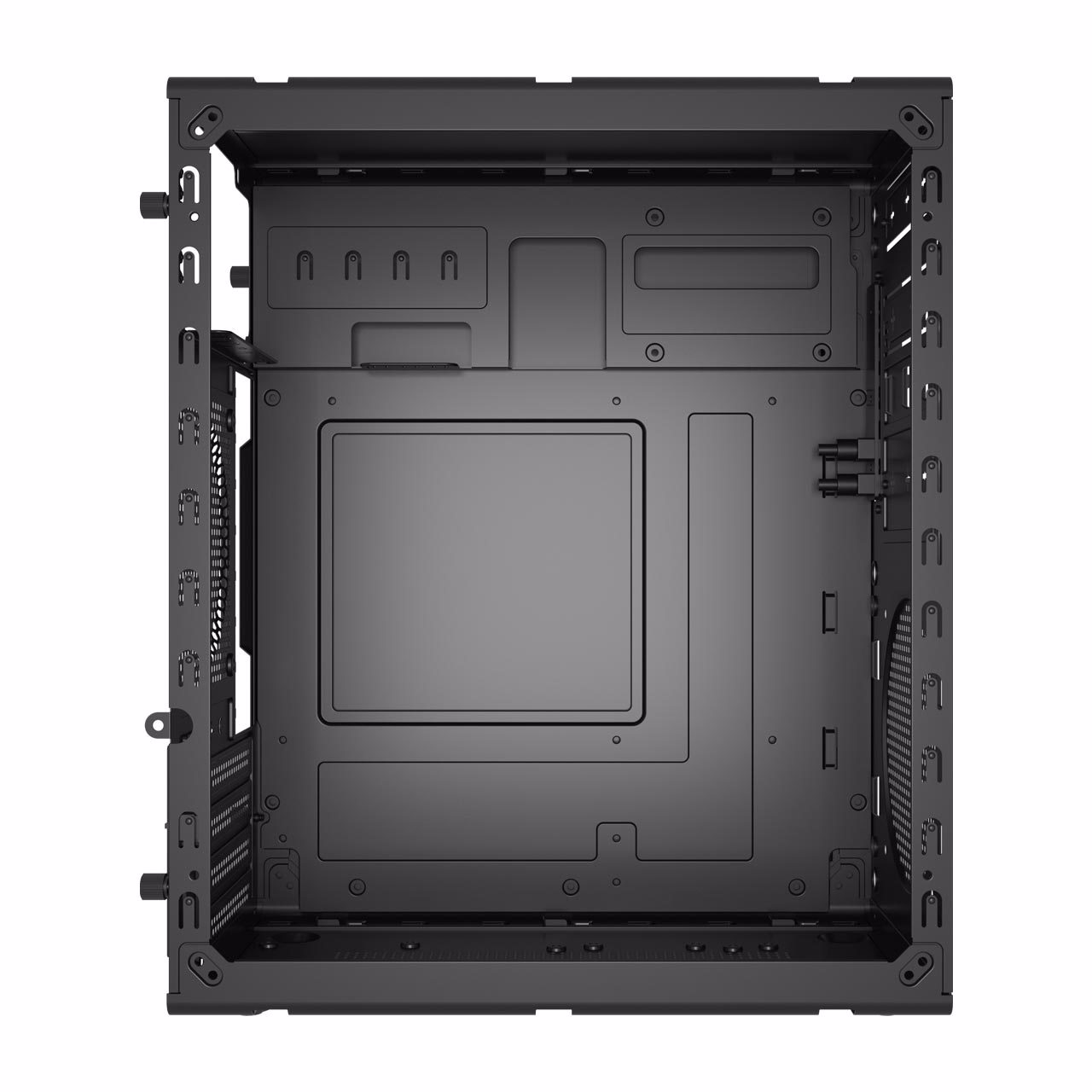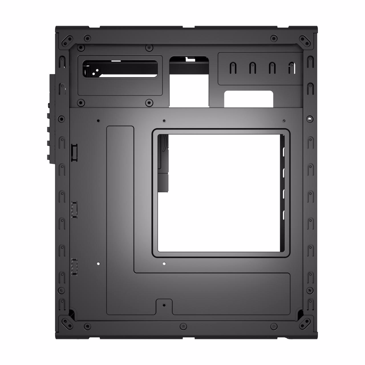 The S120 M-ATX mid tower case offers a clean internal layout with dedicated mounts for two SSDs and one HDD. It supports Micro ATX and Mini-ITX motherboards and provides essential storage options without unnecessary complexity.
