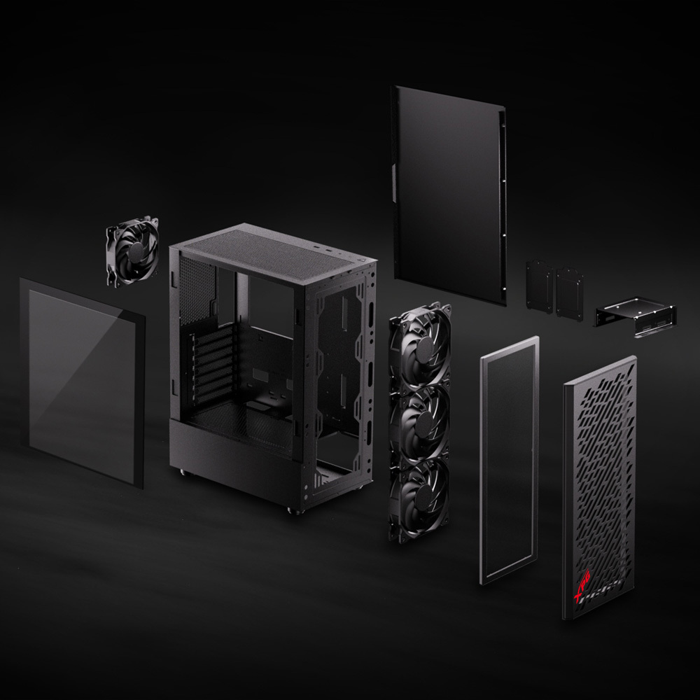 XPG VALOR AIR’s front panel is designed with Streamline-Carving pattern and utilizes steel material. Both front panel and dust filter are designed with magnetic and detachable for quick and convenient removal.