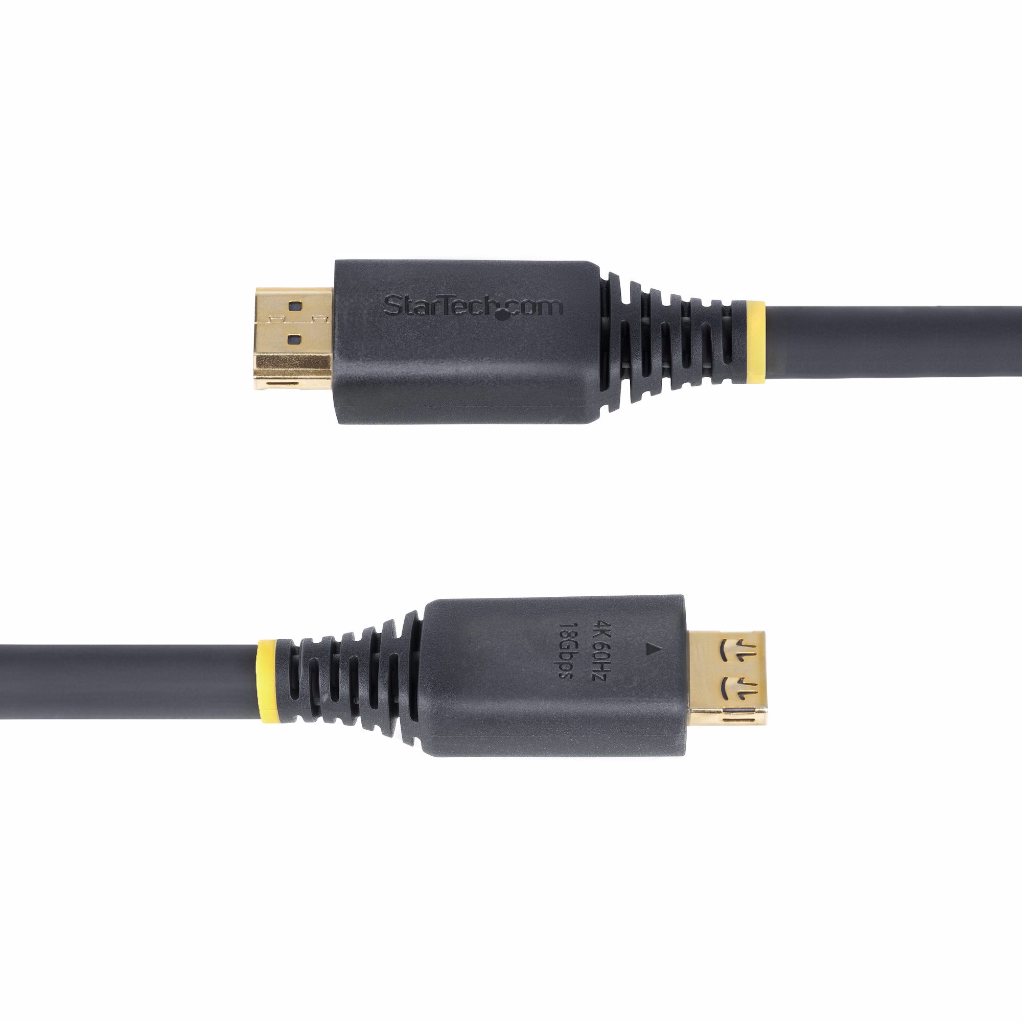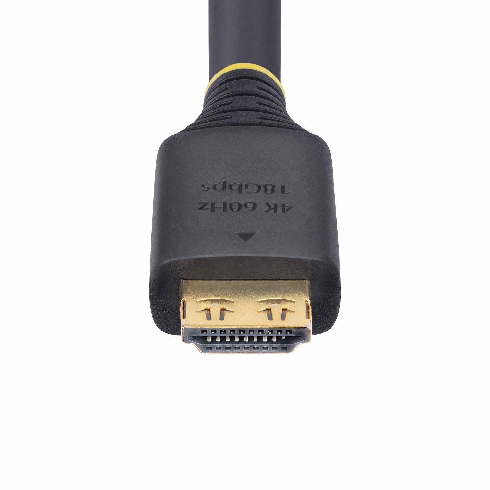 The HDMI UHD Cord features gold-plated gripping connectors to prevent accidental disconnections. The connectors attach securely to HDMI device ports, making this cable ideal for mounted and critical setups such as security systems and HDMI switches.
