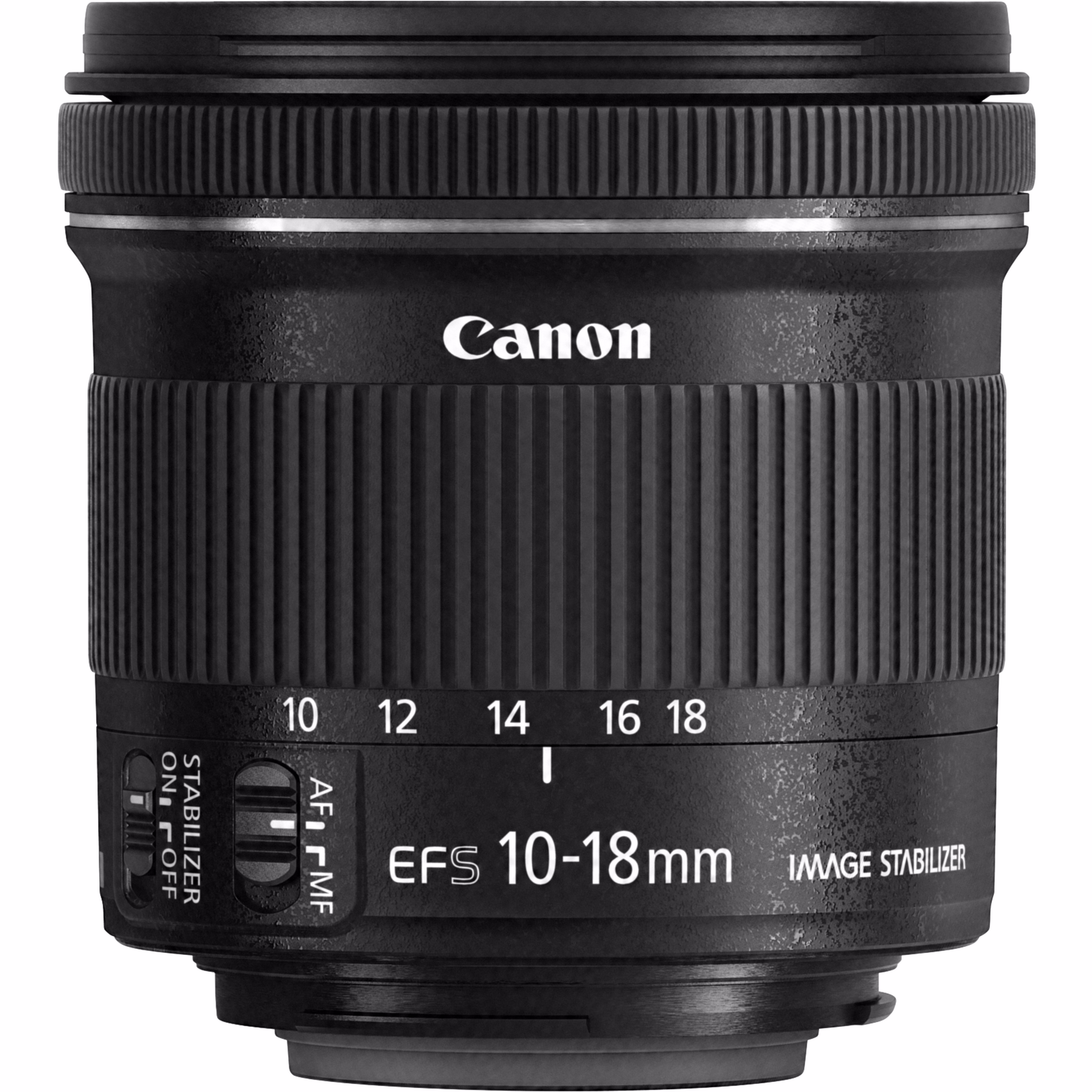 With a compact, lightweight design that's ideal for travel, this ultra-wide-angle EF-S 10-18mm f/4.5-5.6 IS STM zoom lens shoots dramatic scenes and striking architecture. The 10-18mm range gives you an ultra-wide perspective, with exacting precision when shooting buildings and skies without the need to step back, allowing you to capture landscapes and fit more in the frame. Shoot movies or stills with stepping motor (STM) focusing and take high quality images in low light with Image Stabilizer technology to assist with camera-shake, even when hand-held.