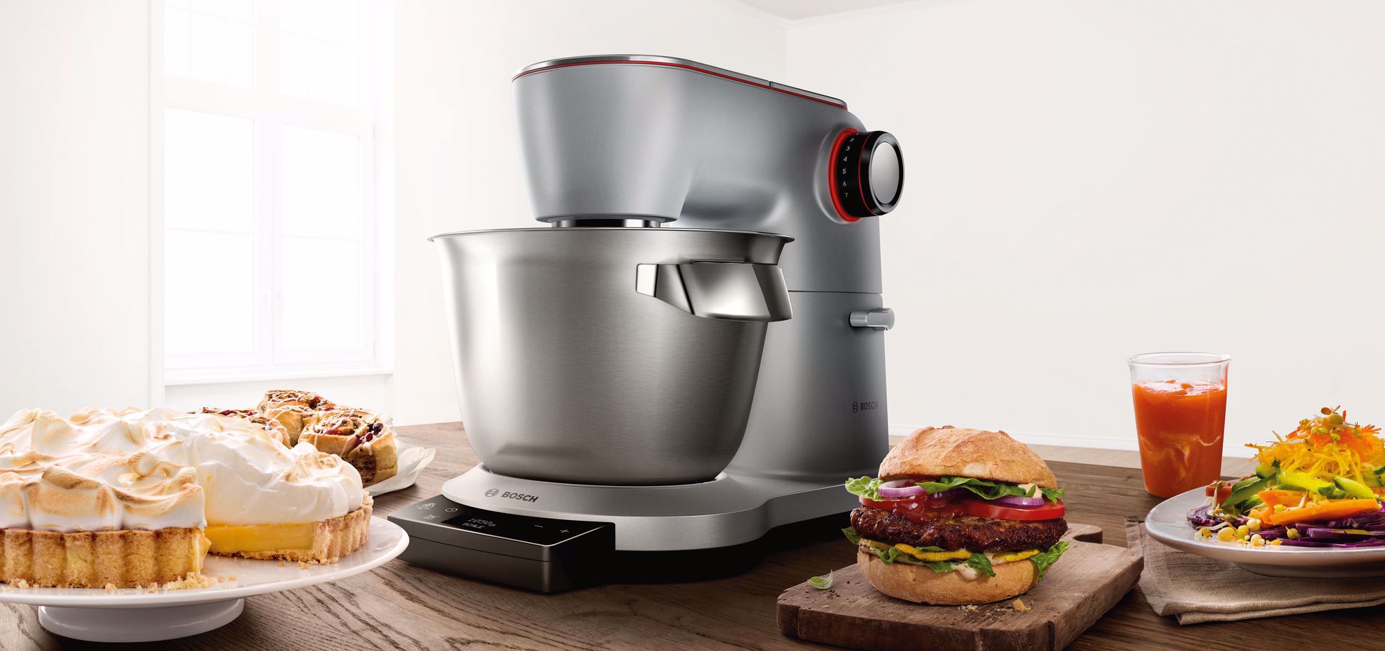 The new OptiMUM kitchen machine with a slim, elegant design. It ensures perfect results every time with its integrated weighing scales, SensorControl Plus automatic functions and 1500 W.
