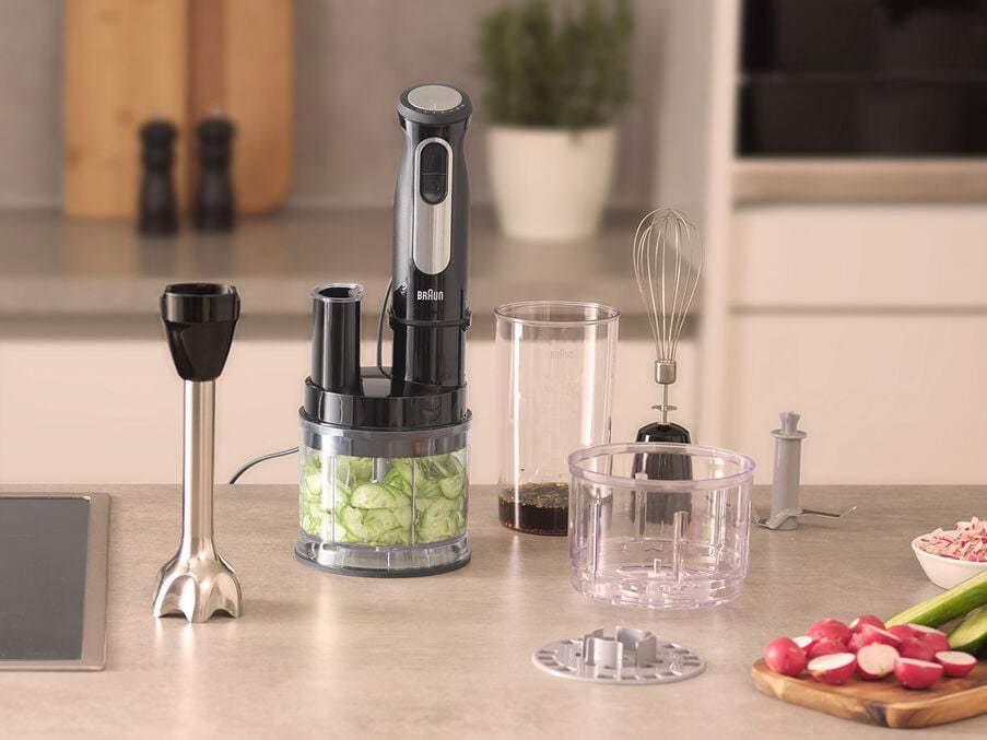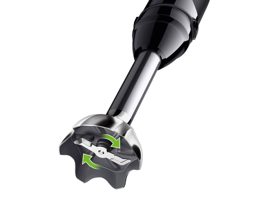 Thanks to a new range of attachments, you can enjoy ultimate versatility in the kitchen with the MultiQuick 5 Pro. Slice, shred, chop, or mix your own delicious dips – with the new Mini Food Processor. With a 45 % smaller footprint you can save space without compromising on features. The SizeControl chopper delivers a 3-in-1 solution and lets you chop hard foods in three different textures, and on top of that, you can even crush ice. On top the MultiQuick 5 Pro is equipped with the PowerBell V Plus Technology for up to 4 times finer results. You’ll appreciate the perfect interaction of the variable one-hand speed wheel with its 25 easily adjustable speeds and a powerful 1000-watt motor.