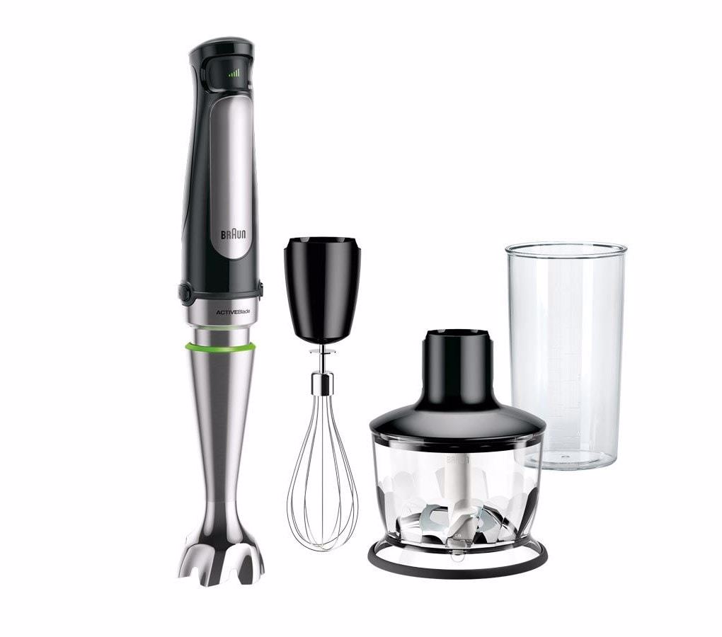 The new Braun MultiQuick 7 hand blender is designed to help you make healthy meals for your family and friends – fast and easy. It now features world’s first ACTIVEBlade technology. This innovative flexible shaft gives you 250 % more active cutting surface to work with* – a clever kitchen helper so you can get the job done easily. It also features Braun’s new Easy SmartSpeed technology, which puts you in control with just one touch. Simply apply pressure on the control button to adjust the power intuitively and without interruption. *Compared to Braun hand blenders with non ACTIVEBlade shaft.
