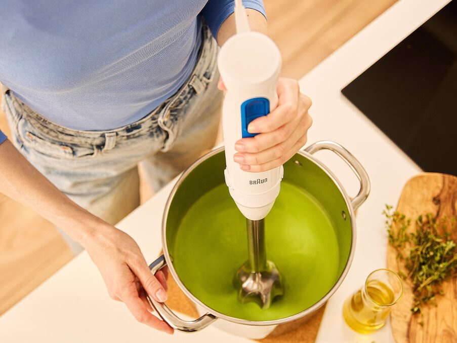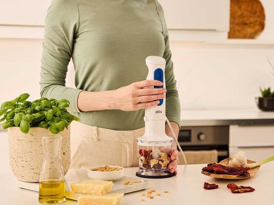 The new MultiQuick 3 features PowerBell VPlus Technology for up to 4 times finer results. An extra milling blade and 6 inner ribs create more interaction between food and the blades for more cutting per rotation, which gives you faster and more efficient blending results. The Dual Speed control is logical and easy to use. With its 900 watts of power, you can blend, chop and whisk whatever you need – simply. Need fine results? Just press one of the two speeds – it’s that easy.