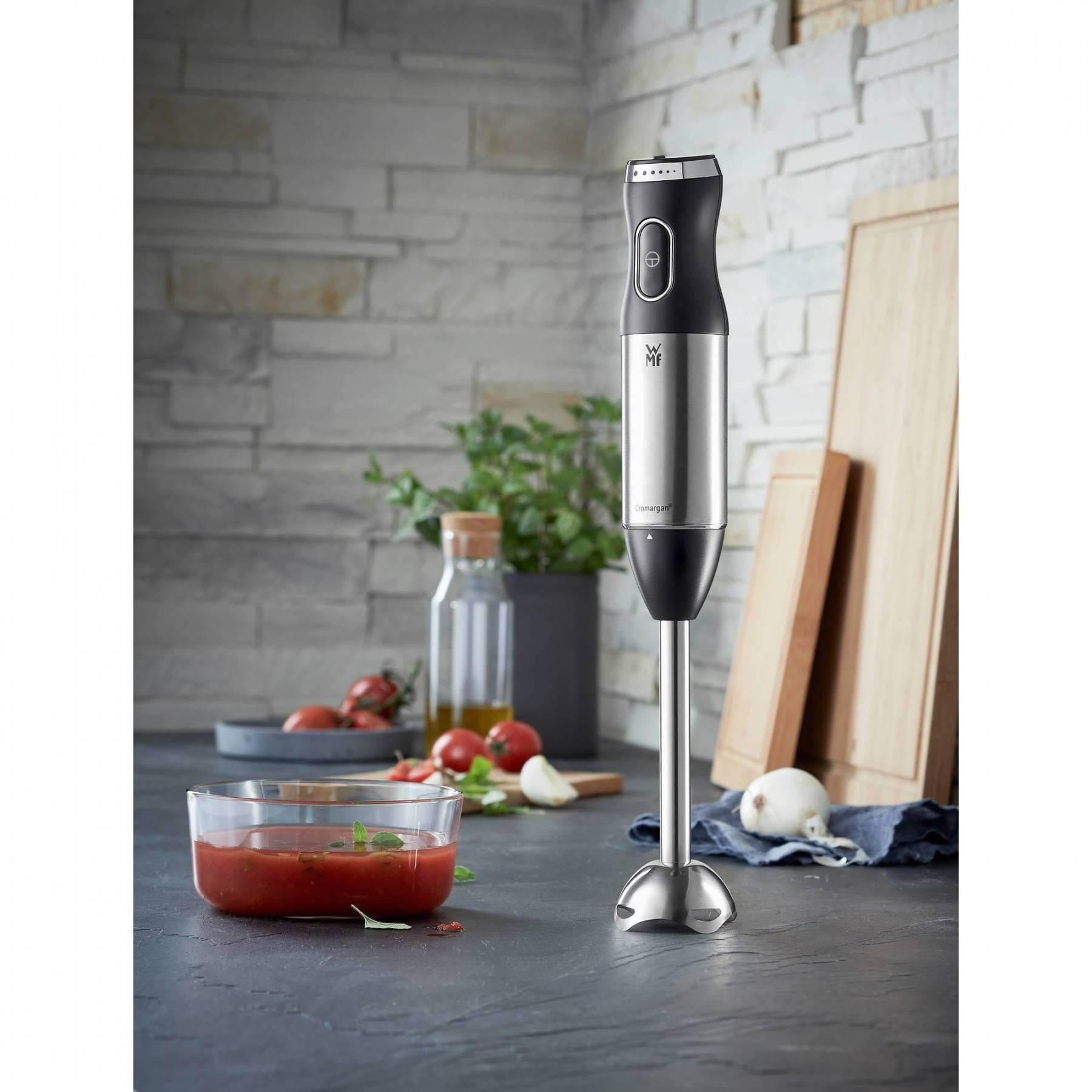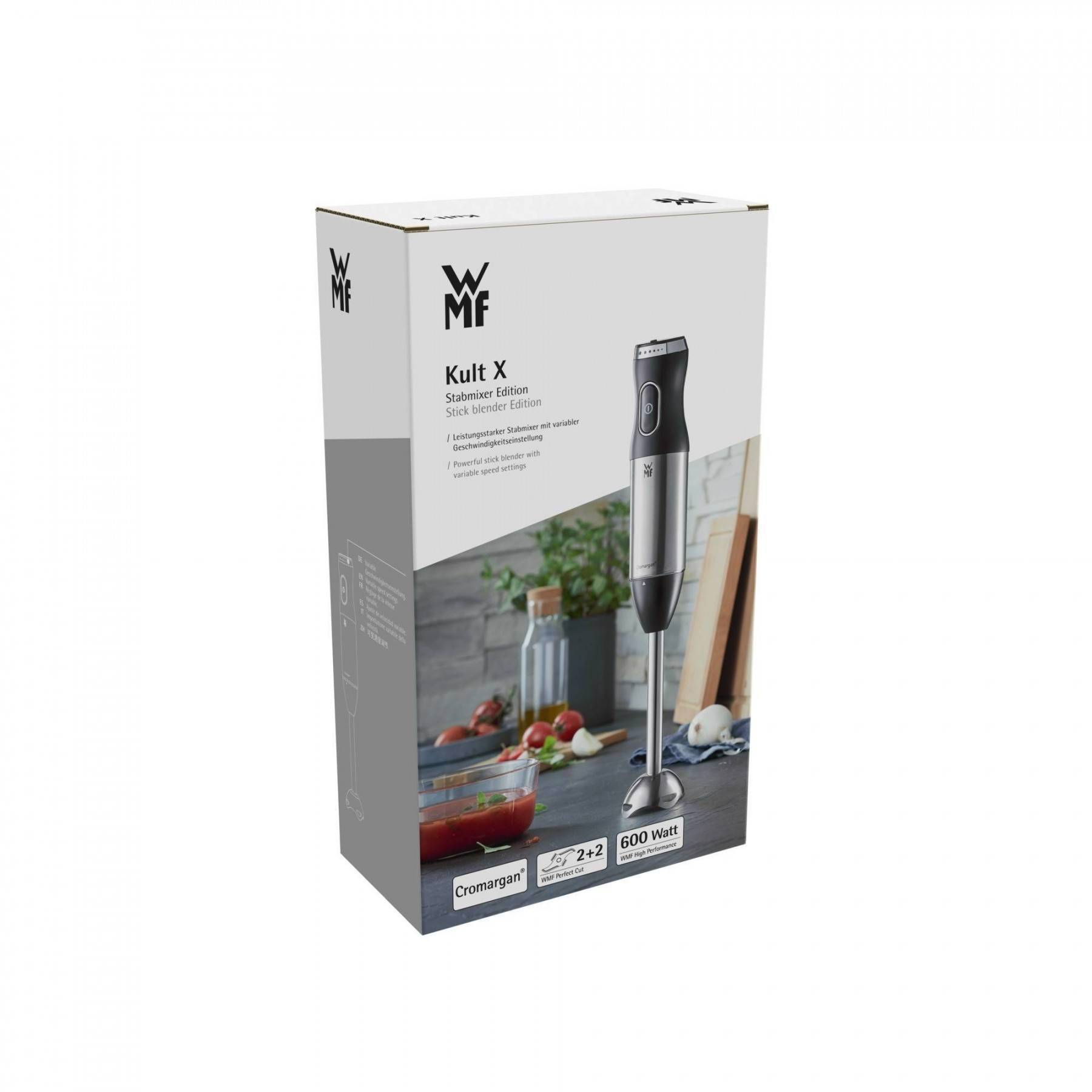 Elegant Cromargan® design – this stick mixer already enjoys cult status. Surprisingly easy to use and slim enough to fit in any drawer. A pureeing all-rounder that makes kitchen work a lot easier. Creamy soups, sauces, vitamin-rich smoothies and thick sauces and dips made in an instant. Variable speed settings and 600 watts of peak blending power ensure the perfect consistency. WMF Perfect Cut Technology does the rest.