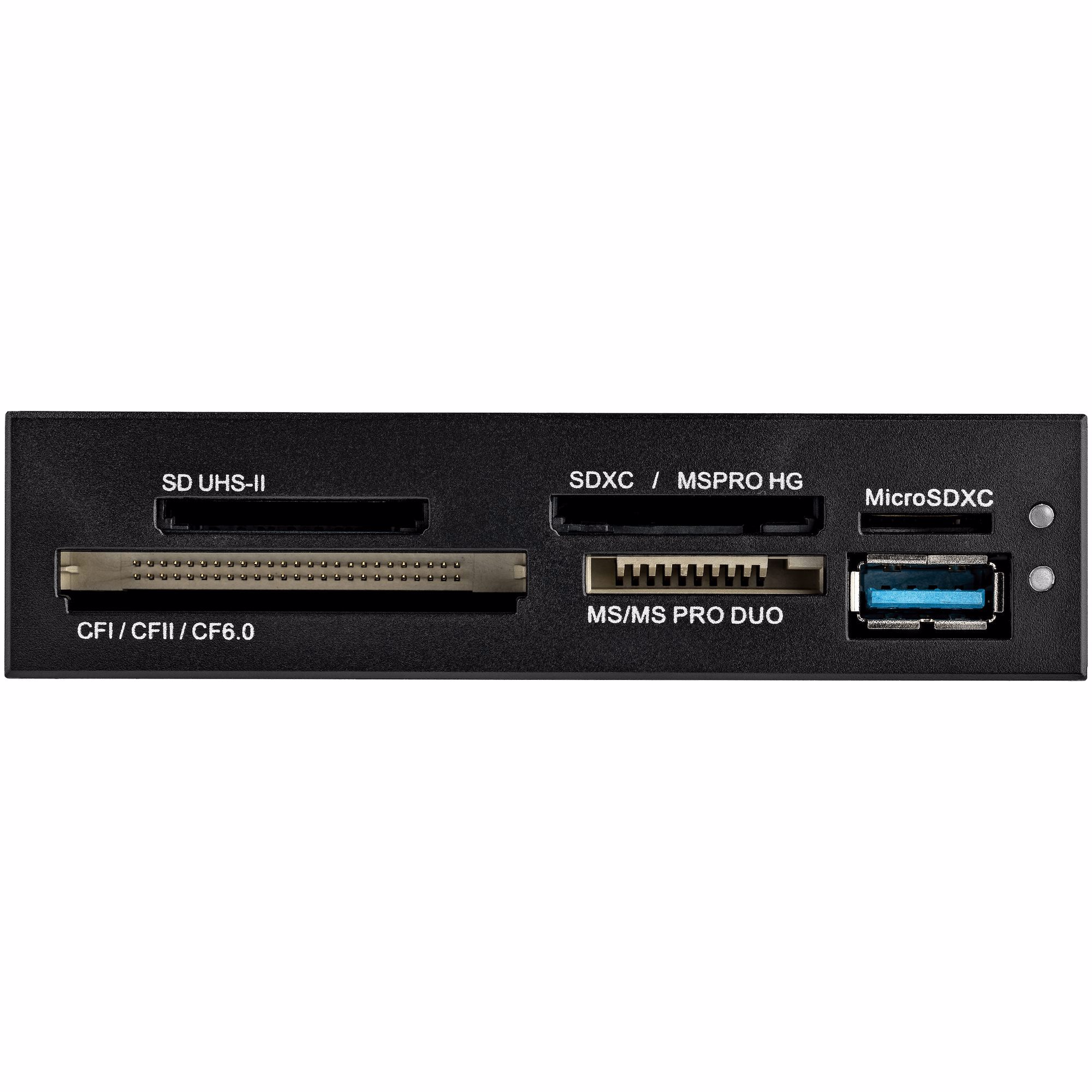StarTech.com 35FCREADBU3, Kompakt flash (CF), Hukommelsesstick (MS), MicroSD (TransFlash), MicroSDHC, MiniSD, MMC, MS Duo,..., Sort, Metallic, 5000 Mbit/s, Plast, Stål, Strøm, CE, FCC, RoHS. TAA, REACH