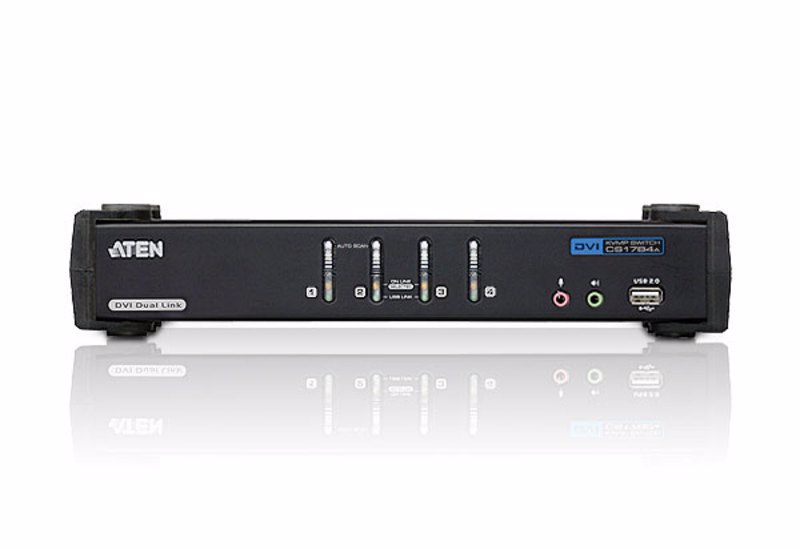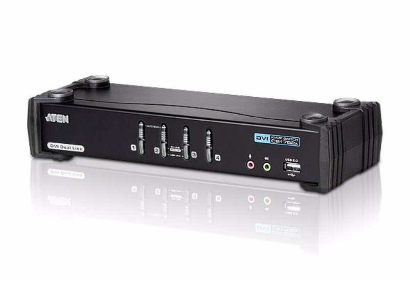 The CS1784A USB DVI Dual Link KVMP™ Switch charts a revolutionary direction in KVM switch functionality. It combines the capabilities of a 4-port KVM switch with a 2-Port USB hub, while providing a DVI monitor interface and audio support. Moreover it carries advanced features, such as nVidia 3D Vision ready 120Hz 3D display support, gaming keyboard compatibility and port selection/switching using a mouse, aimed at giving you flexibility, convenience and enjoyment.